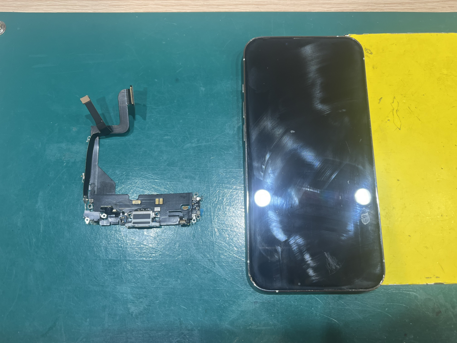 端末を分解し、充電コネクターパーツを取り外して新しい高品質の交換パーツへ換装しました。
