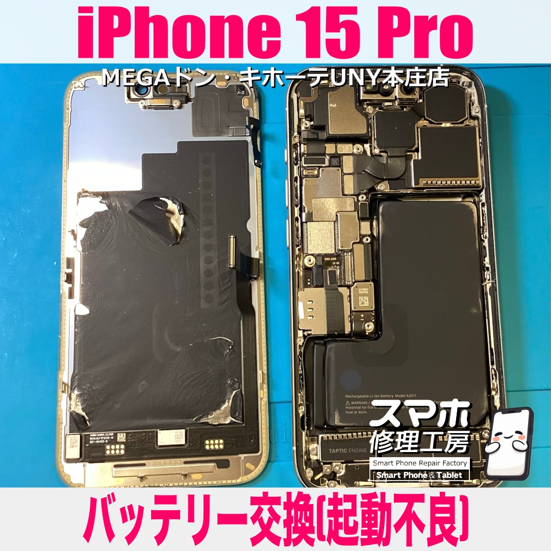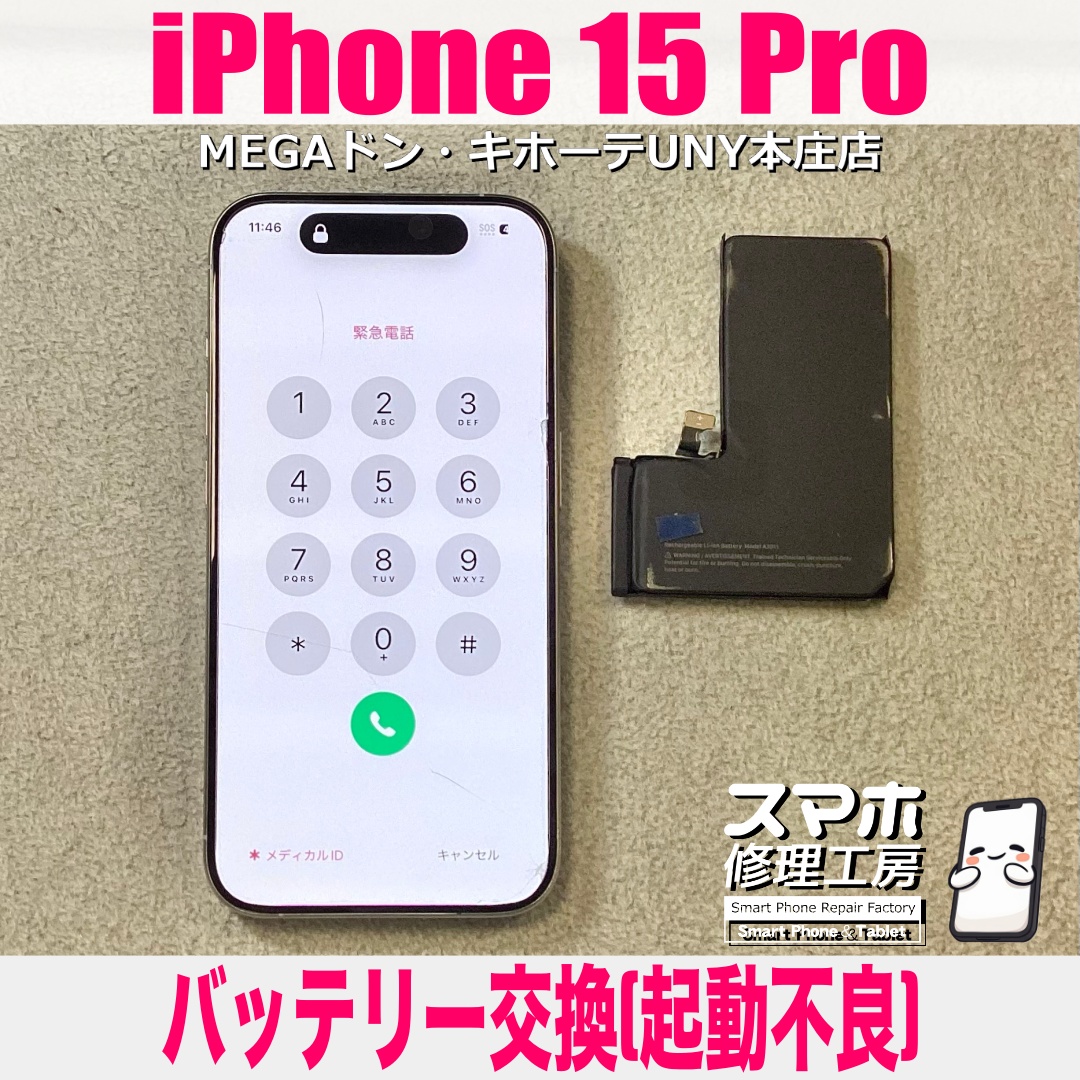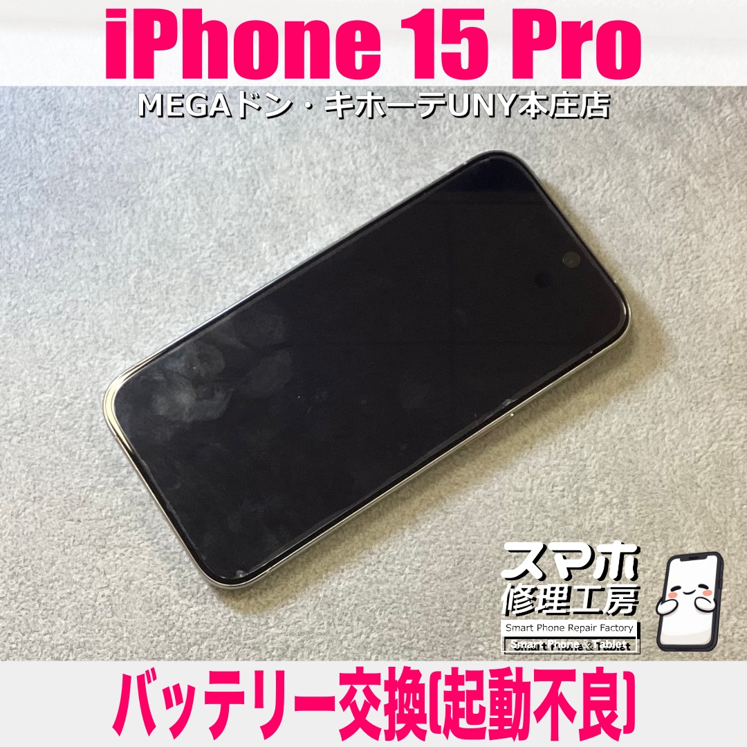 iPhone15Pro(アイフォンフィフティーンプロ)のバッテリー交換(起動不良)のご依頼になります💪