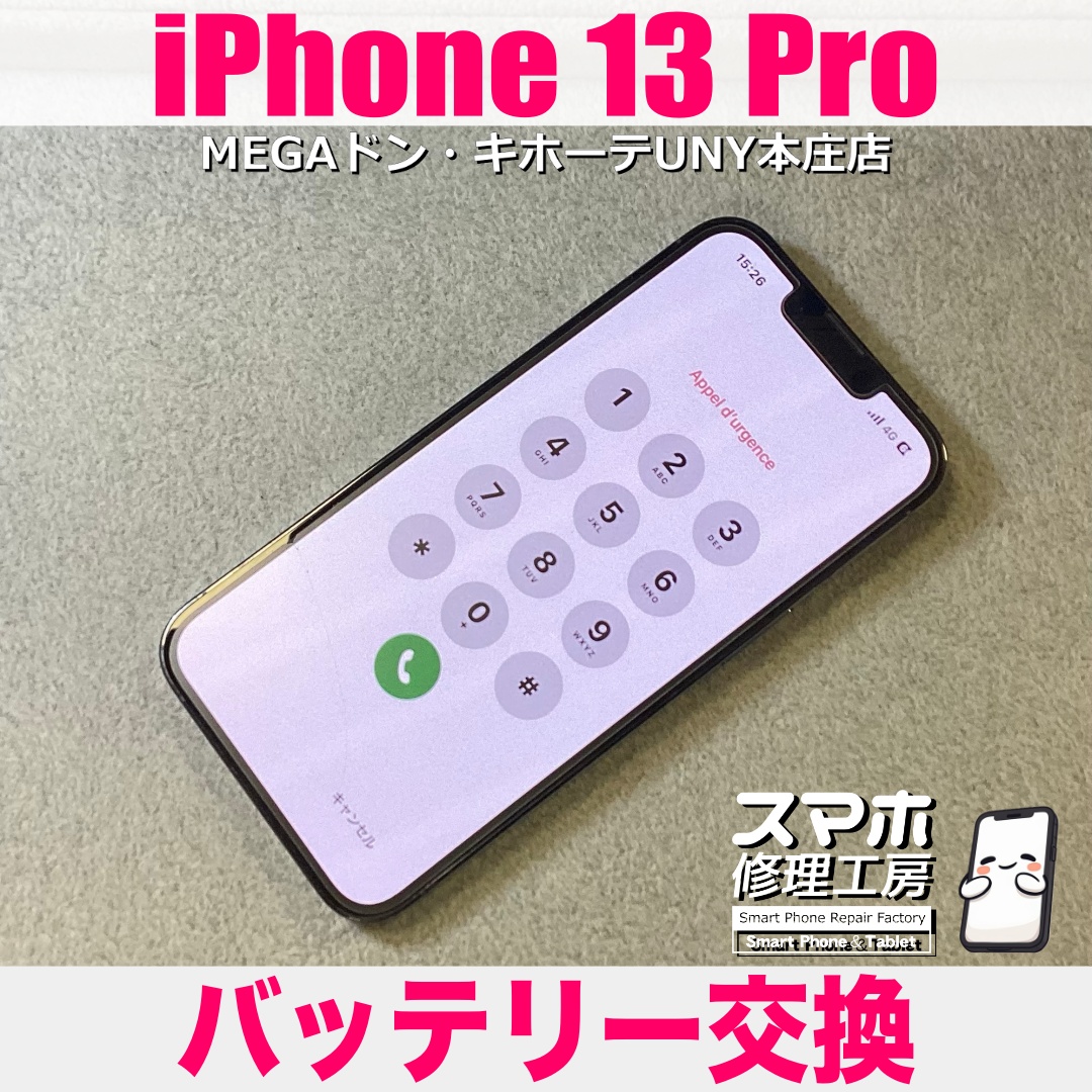 iPhone13Pro(アイフォンサーティーンプロ)のバッテリー交換のご依頼になります💪😠