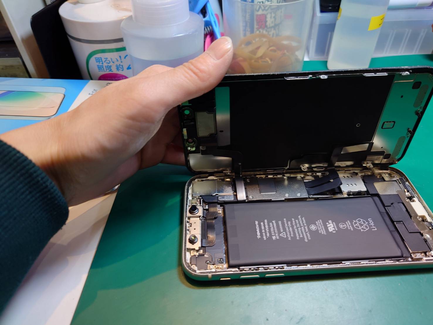 充電反応などはあり画面の交換で表示復旧が見込まれる為、早速画面交換を行っていきます!