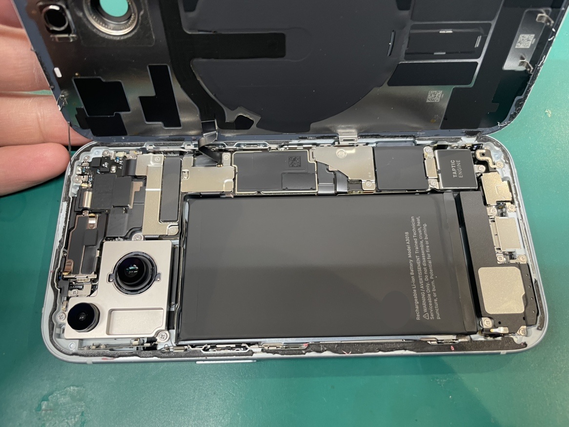 iPhone14シリーズからバッテリー交換をする際は画面ではなく背面から分解をするようになりました。