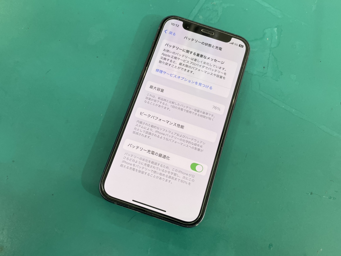 確認をしたところバッテリー最大容量が76%まで低下していました。