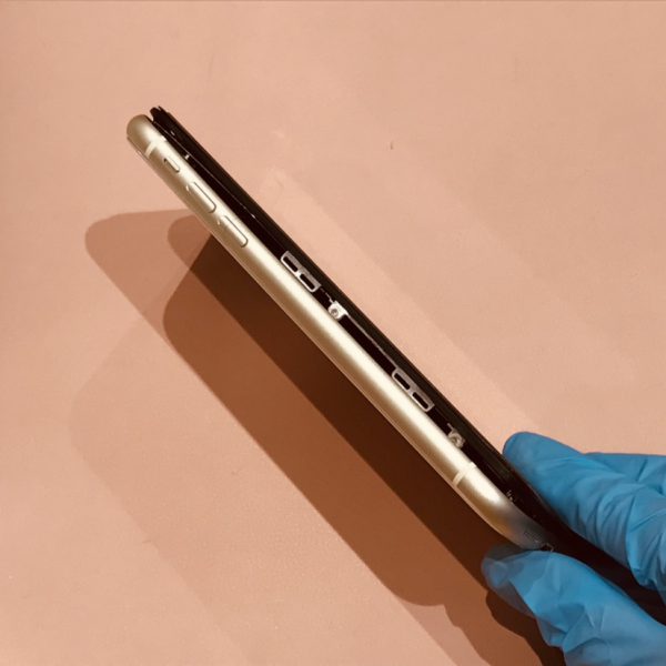 端末を横から見ると、バッテリーの膨張により画面が浮いてしまっているのがわかります。