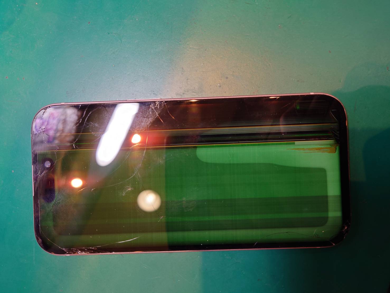 「落として画面が深緑色になり何も操作できない」とのご相談がございました。