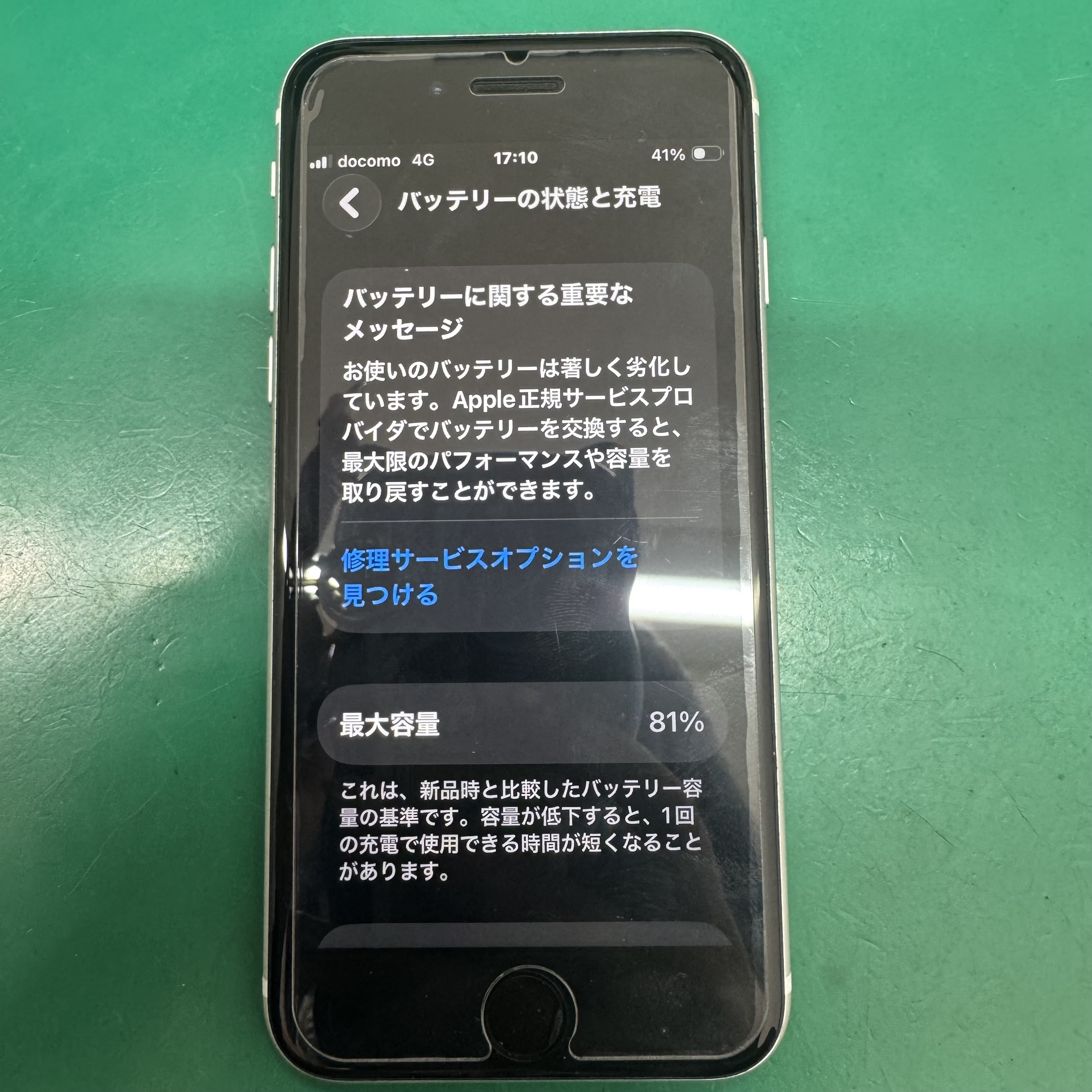 バッテリーの状態を確認させて頂くと、最大容量は81%