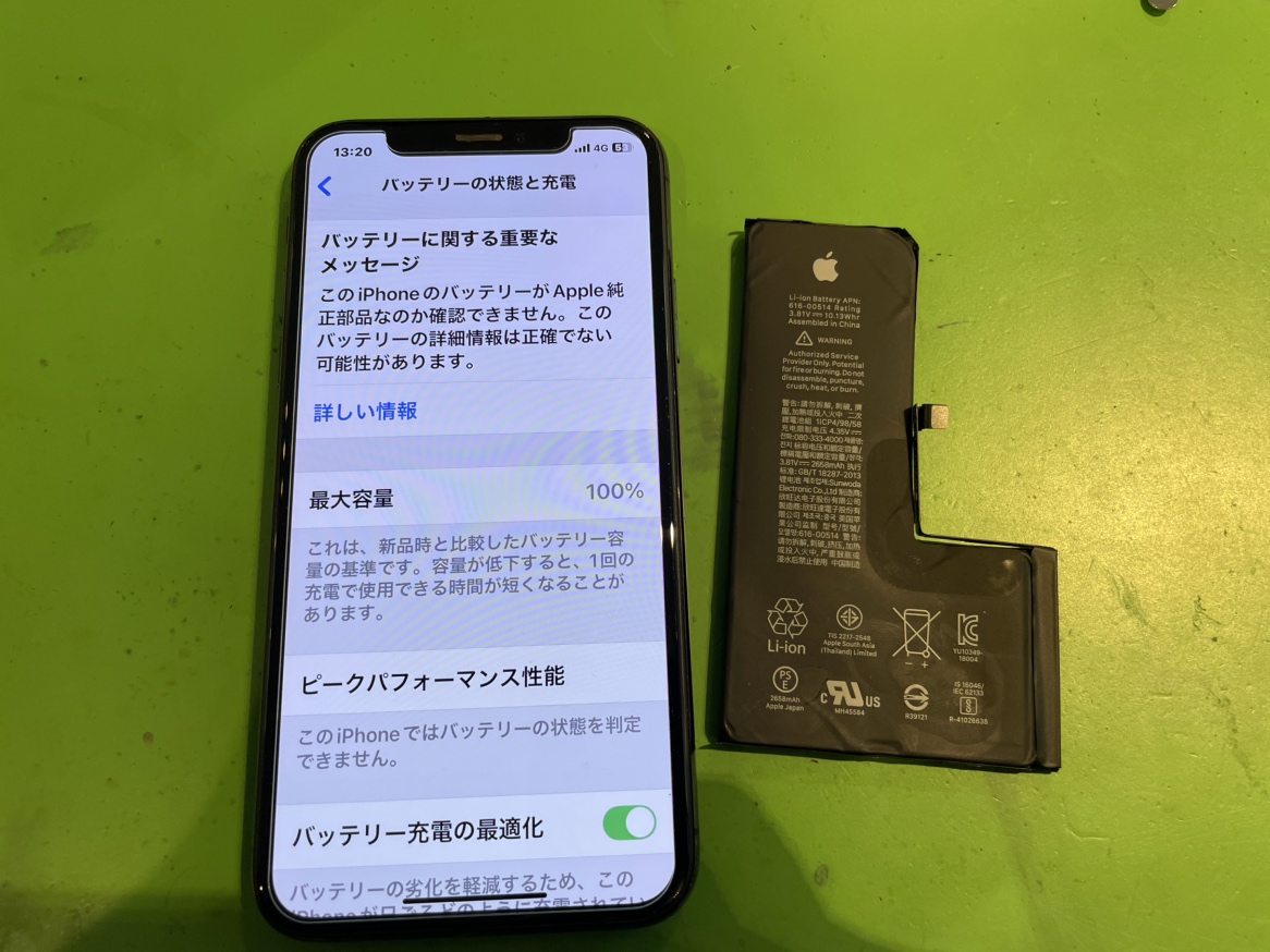 修理後はバッテリーの最大容量も正常になり、充電の持ちが劇的に改善。