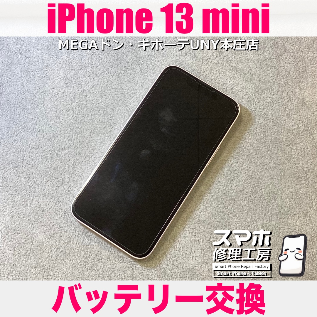 iPhone13mini(アイフォンサーティーンミニ)のバッテリー交換のご依頼になります💪😠