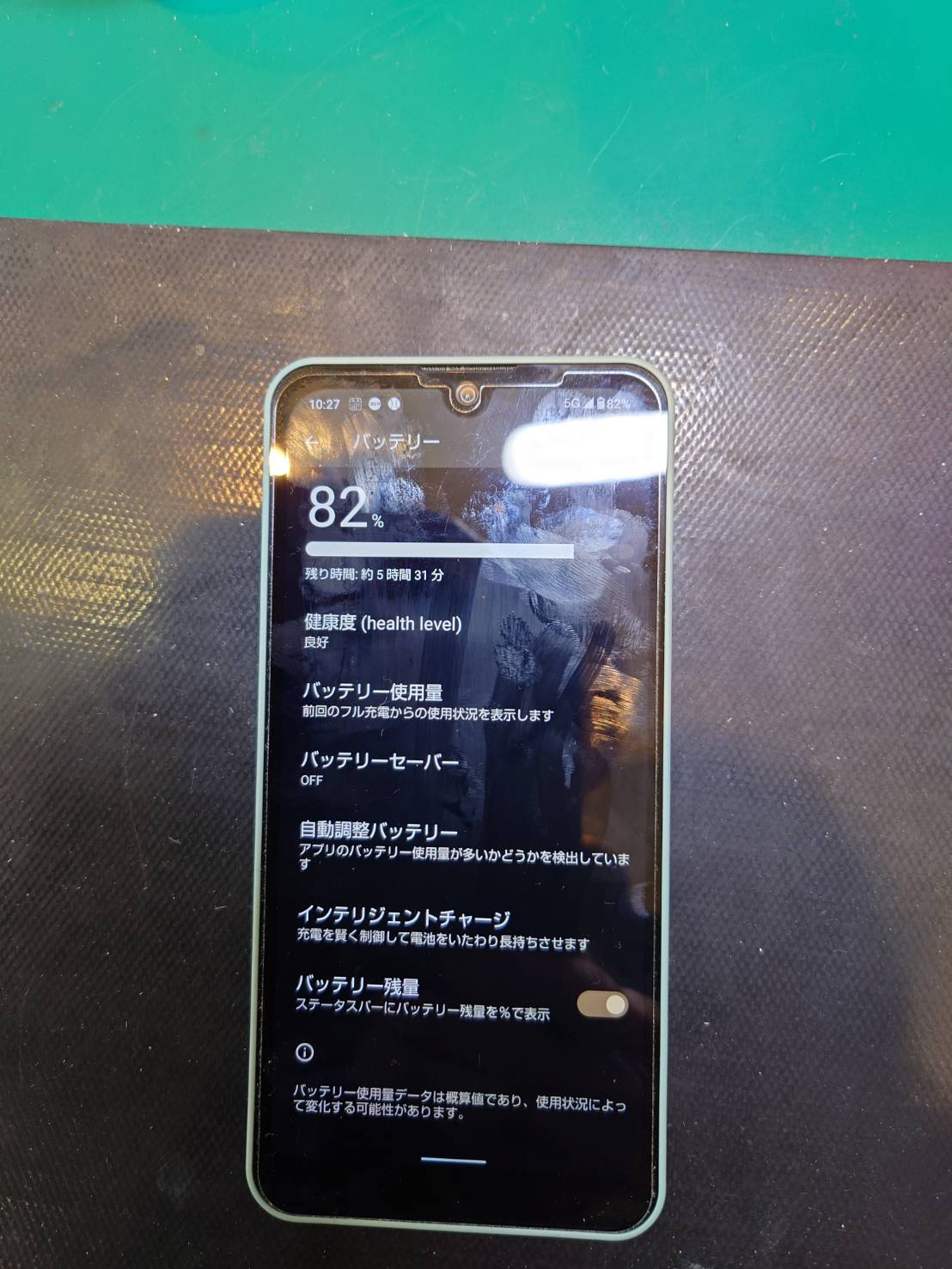 店頭で端末の状態を確認すると満充電から2時間程度にも関わらず80%台までバッテリー残量が低下しており、操作中も値が減っています。