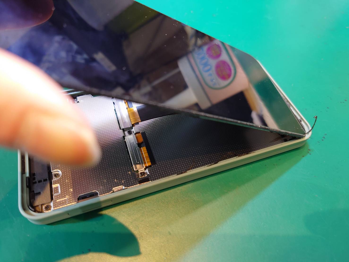 本機種は画面から分解を行う必要があり4隅が強く固定されている為、しっかりと加熱してから作業を行います。