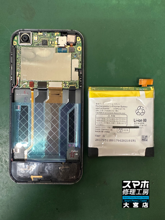 SHARP AQUOS R(SH-03J,SHV39,605SH)のバッテリー交換修理です。