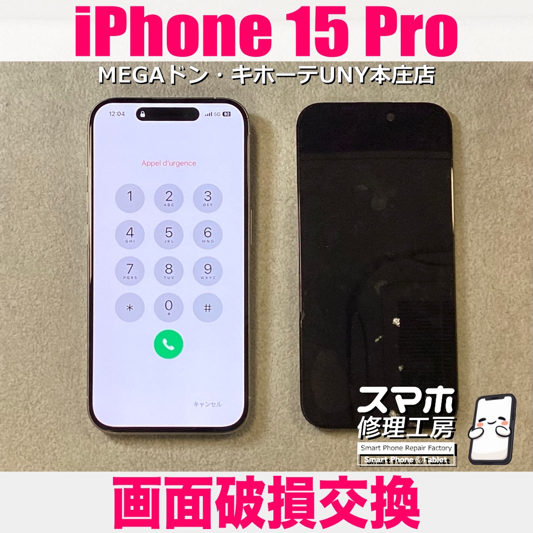 iPhone15Pro(アイフォンフィフティーンプロ)の画面破損交換のご依頼になります💪