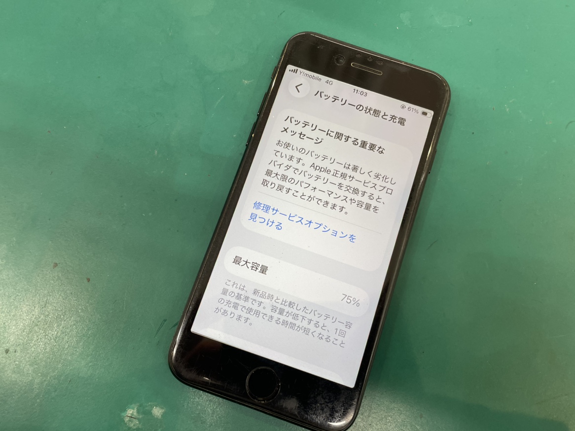 確認をしたところバッテリー最大容量が75%まで低下していました。