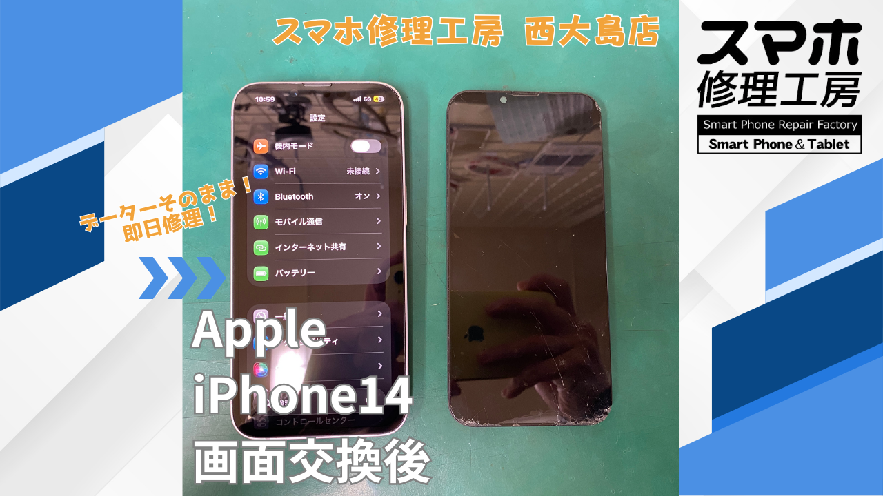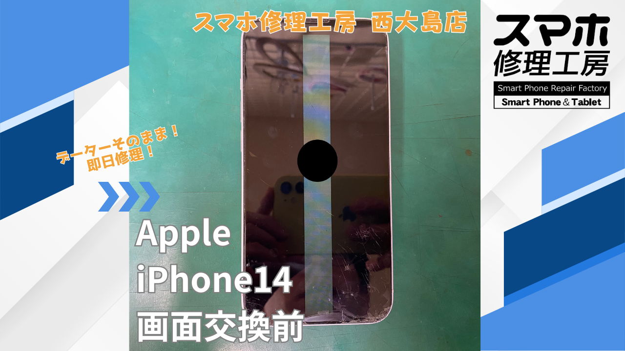 iPhone14、画面交換|江東区でデータそのまま修理ならスマホ修理工房 西大島店
