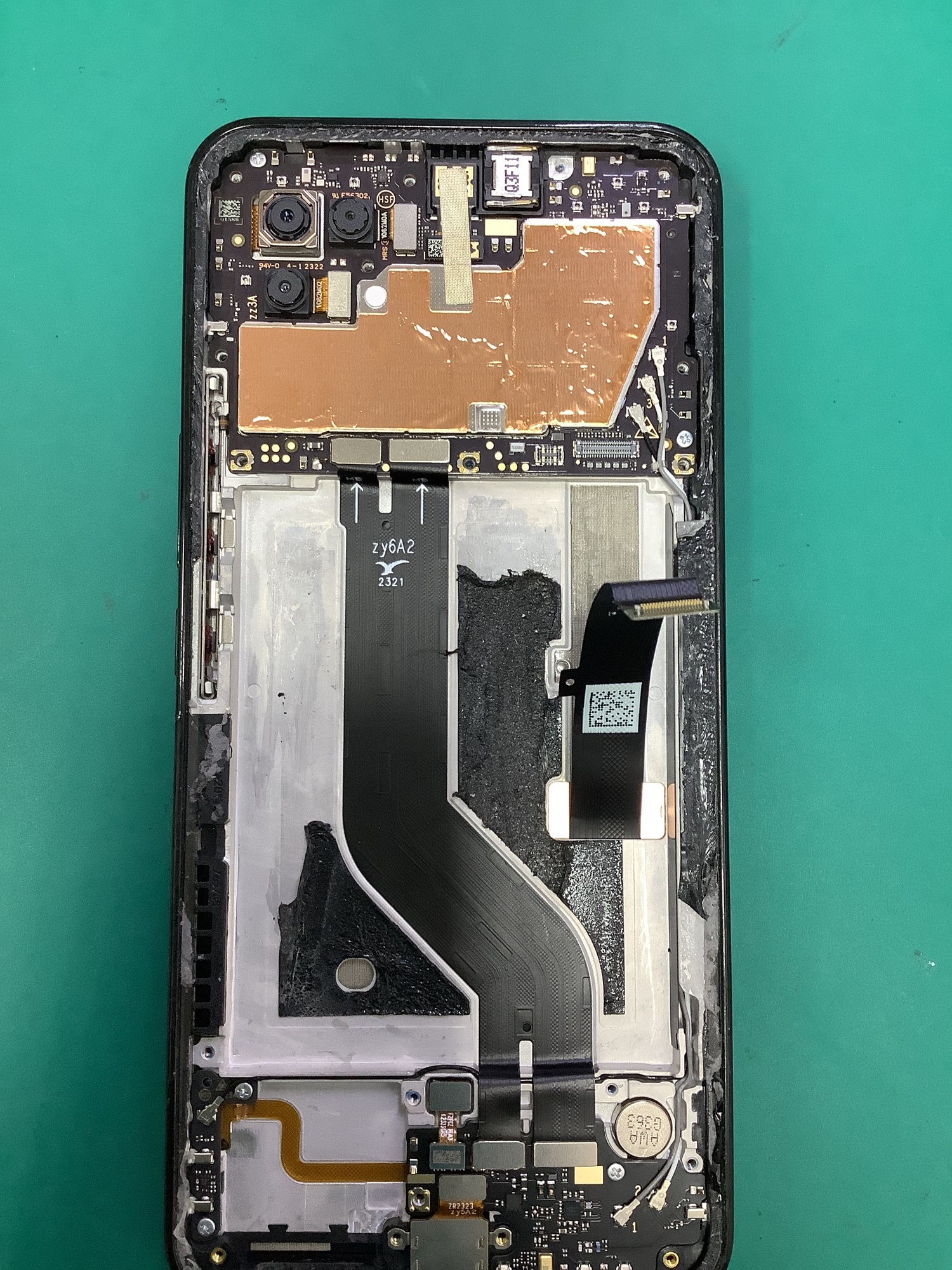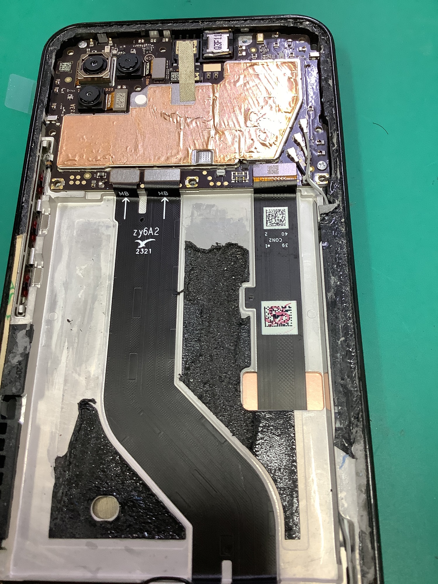 バッテリーが外れましたので、画面のケーブルのコネクタを外して、取り外しができるようにします。