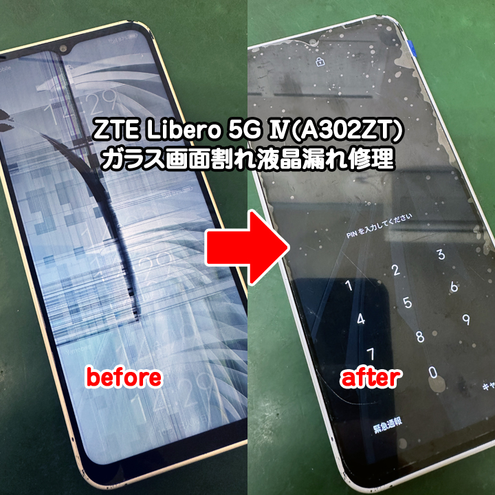 <ZTE Libero 5G Ⅳ(A302ZT)ガラス画面割れ液晶漏れ修理>