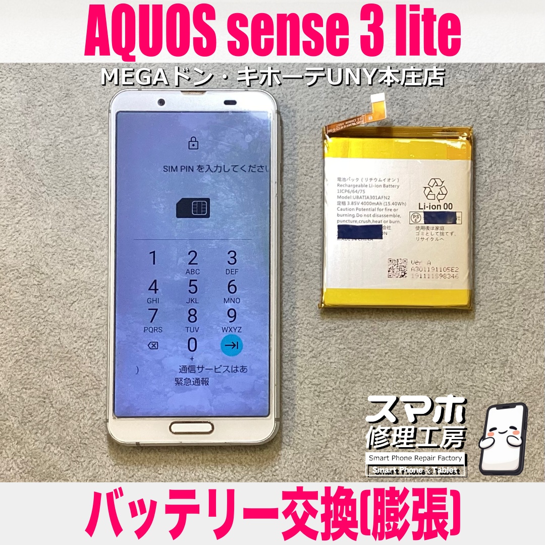 AQUOS sense3 lite(アクオスセンススリーライト)のバッテリー膨張交換のご依頼になります💪