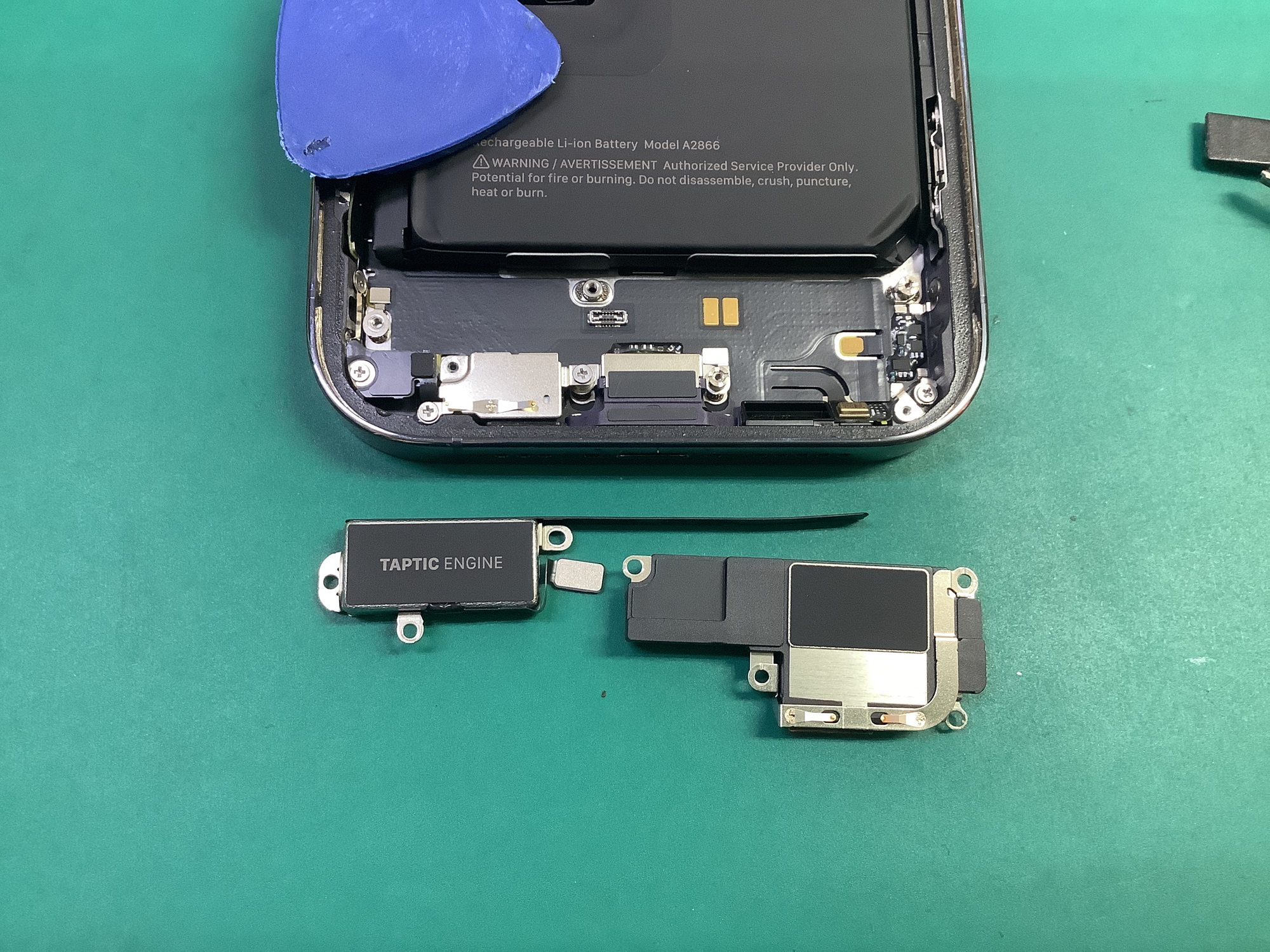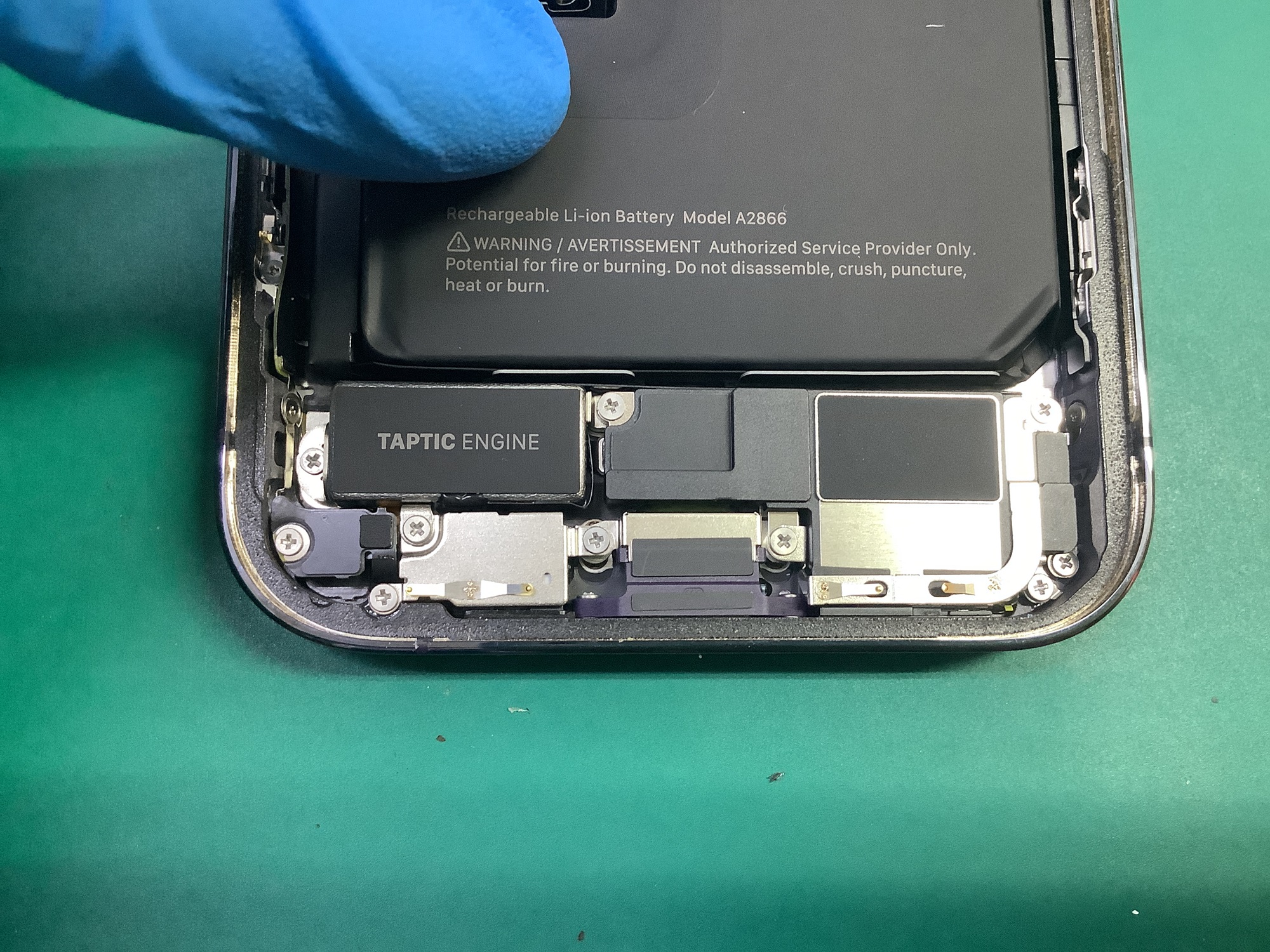 続いて、バッテリーを外せるように下部のラウドスピーカー、タップティックエンジンを取り外していきます。