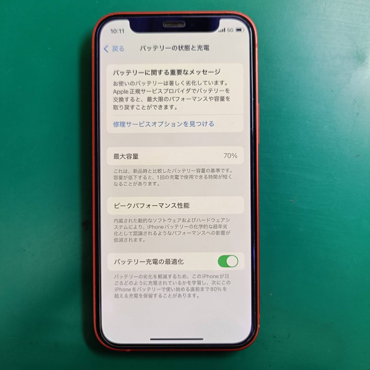修理内容:バッテリー交換(バッテリーの減り早い)