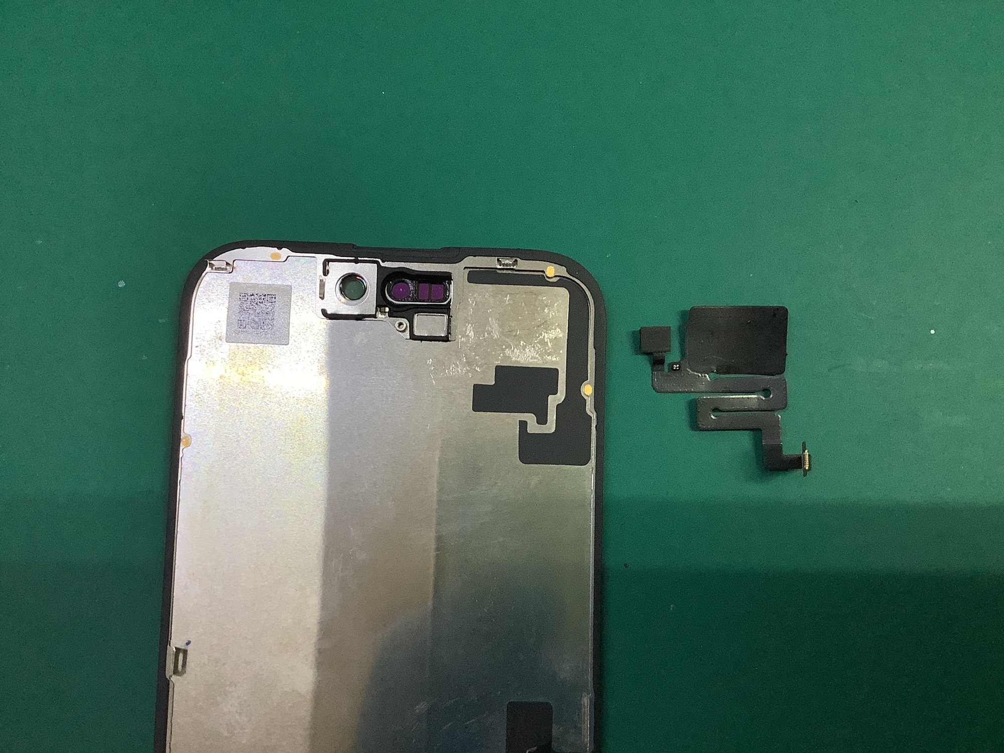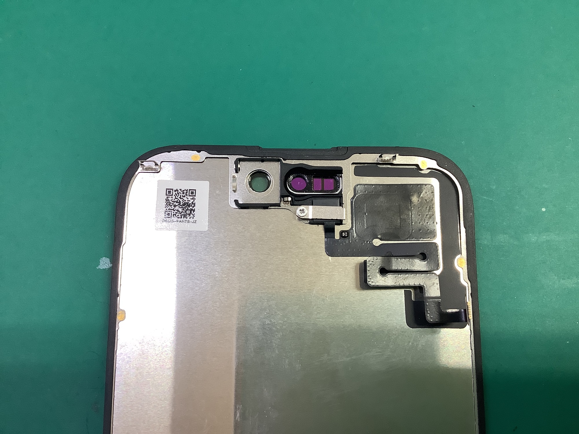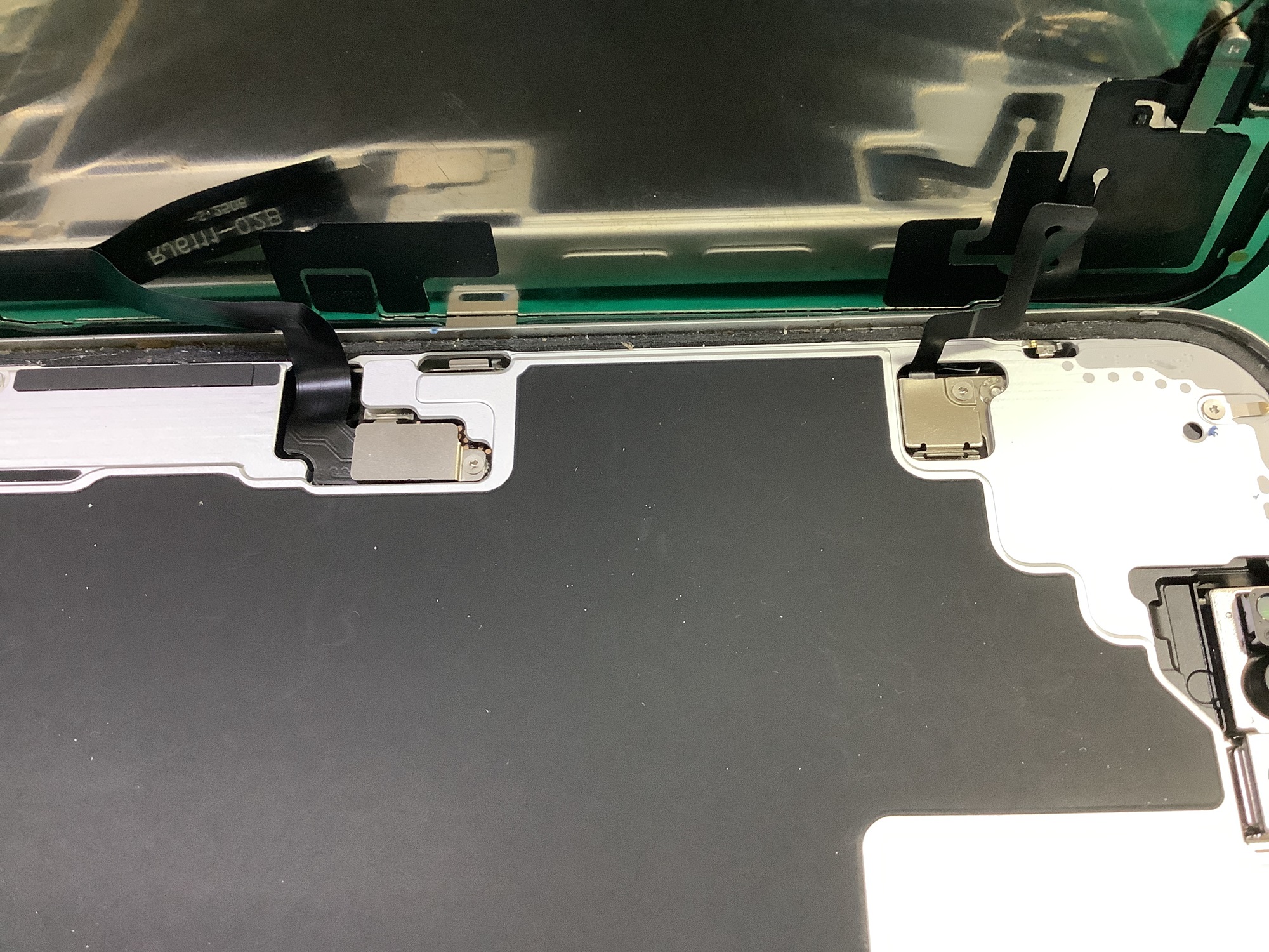 続いて、画面上部にあるセンサーパーツを取り外して交換用の新しいパネルへ移植していきます。
