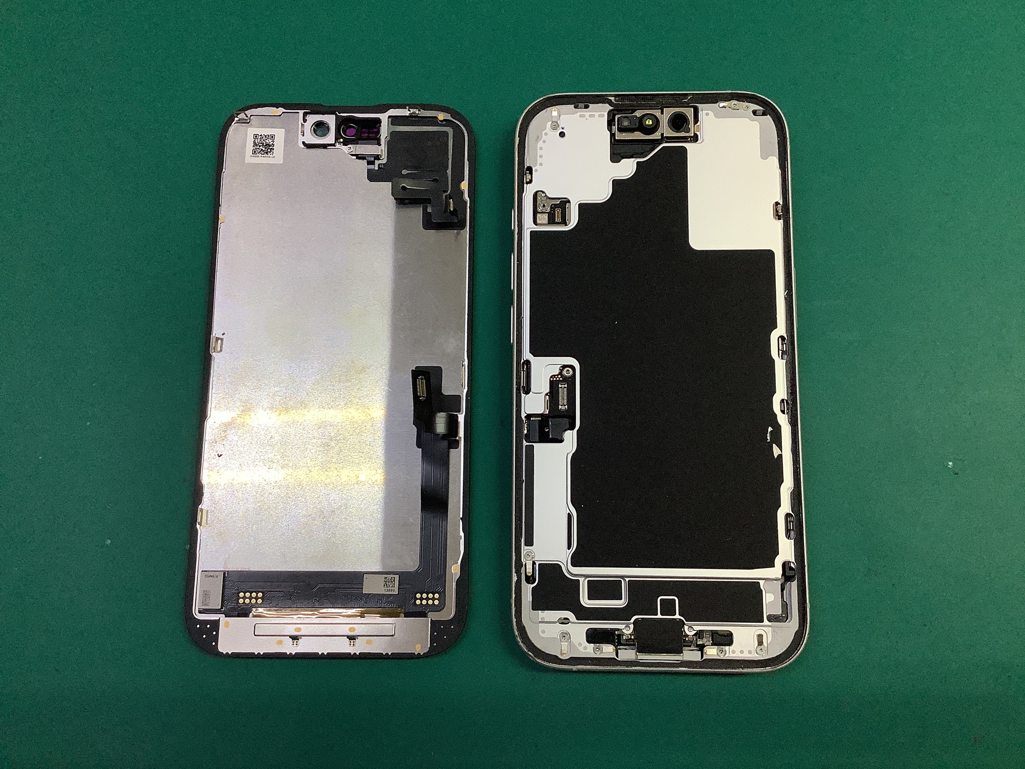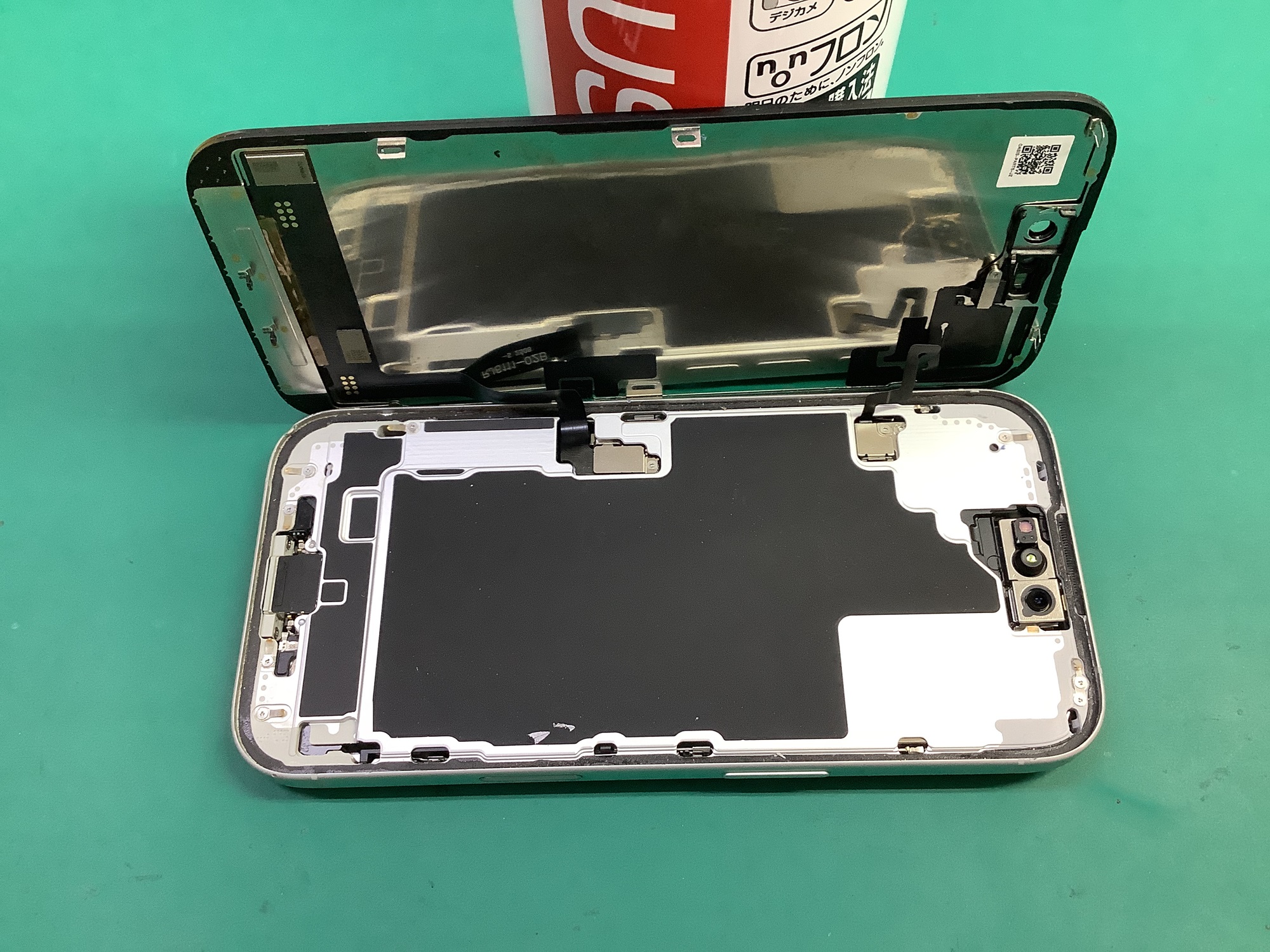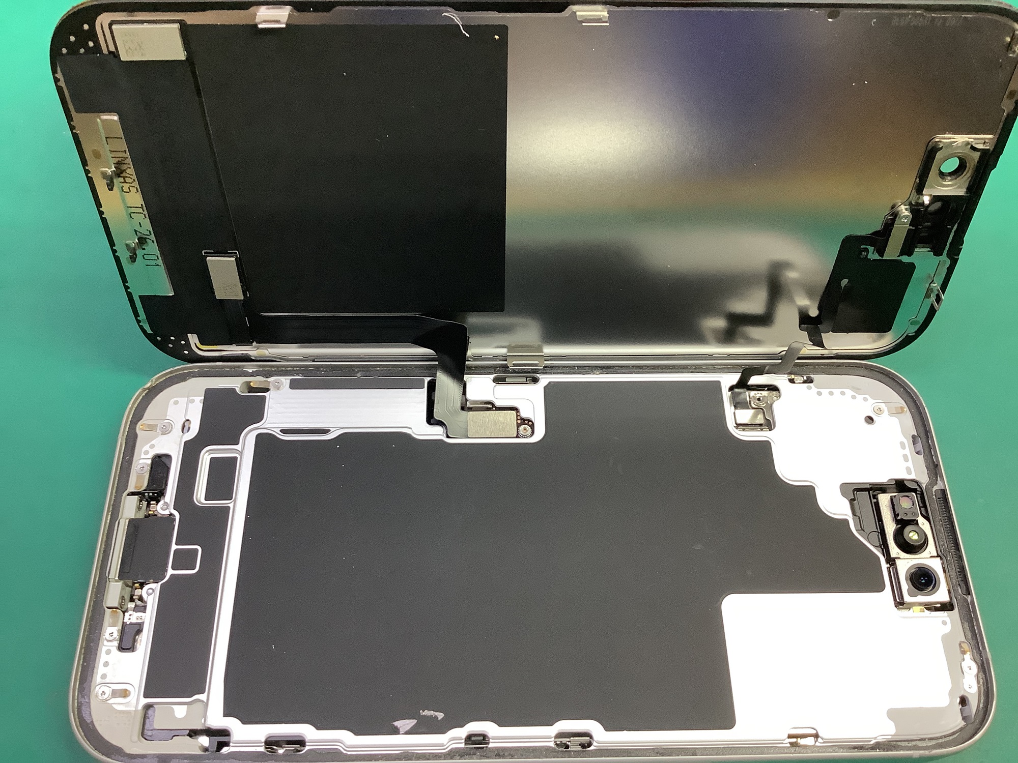 続いて、画面上部にあるセンサーパーツを取り外して交換用の新しいパネルへ移植していきます。