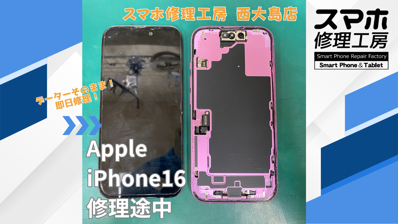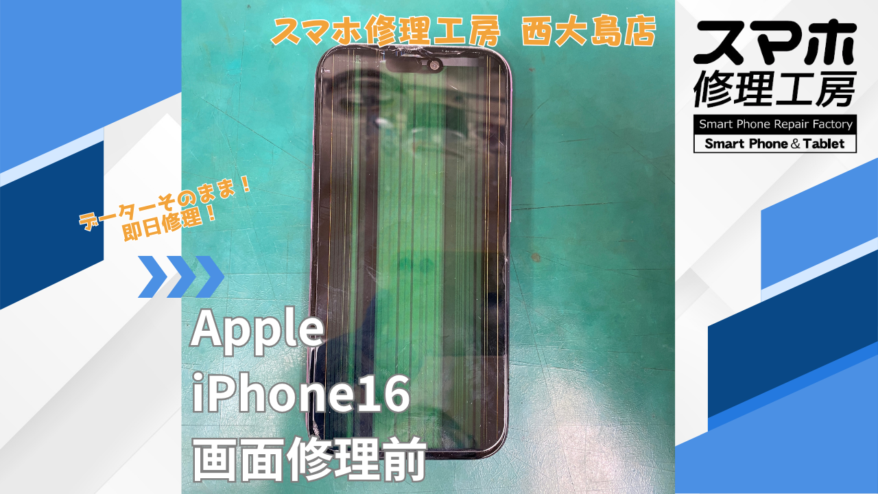 iPhone16 画面交換|江東区でデータそのまま修理ならスマホ修理工房 西大島店
