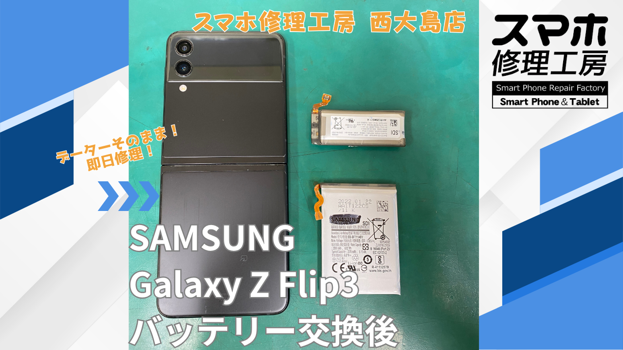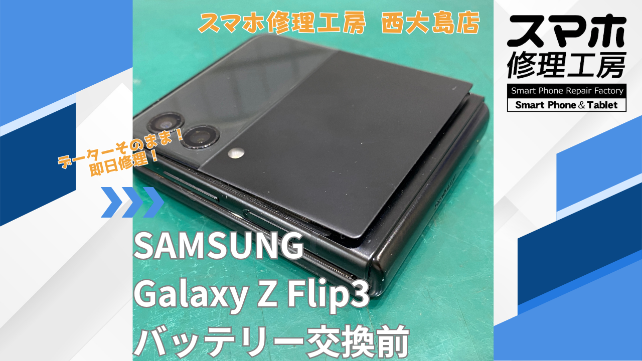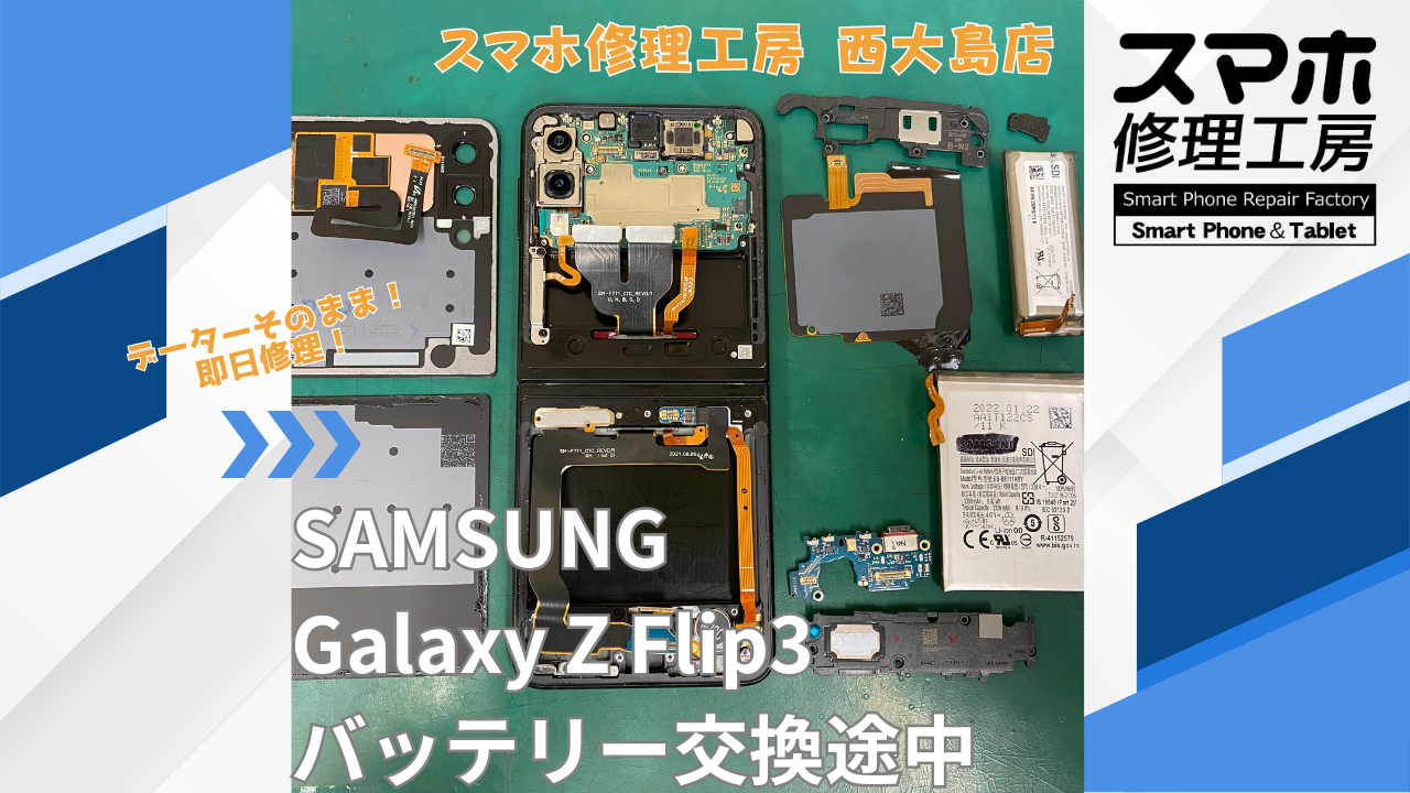 Galaxy Z Flip3 バッテリー膨張|江東区でデータそのまま修理ならスマホ修理工房 西大島店
