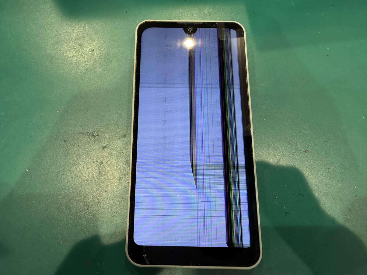 今回、お持ち込みいただいた端末は液晶に大きなヒビが入ってしまい画面が正しく表示されない状態となってしまっていました。