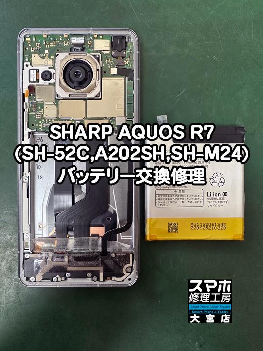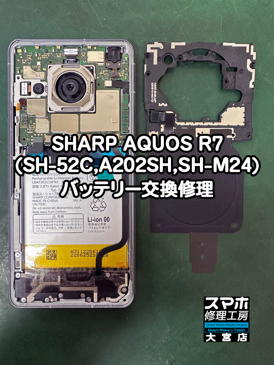 SHARP AQUOS R7(SH-52C,A202SH,SH-M24)のバッテリー交換修理です。