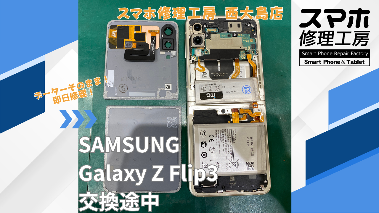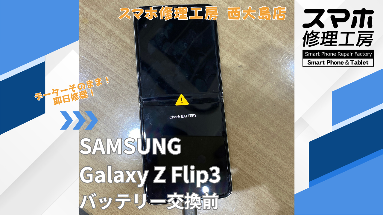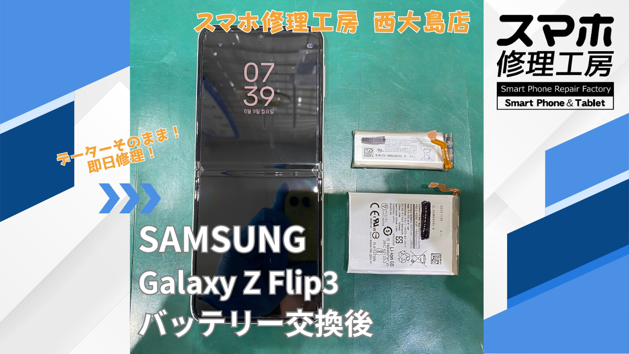 Galaxy Z Flip3 バッテリー交換|江東区でデータそのまま修理ならスマホ修理工房 西大島店