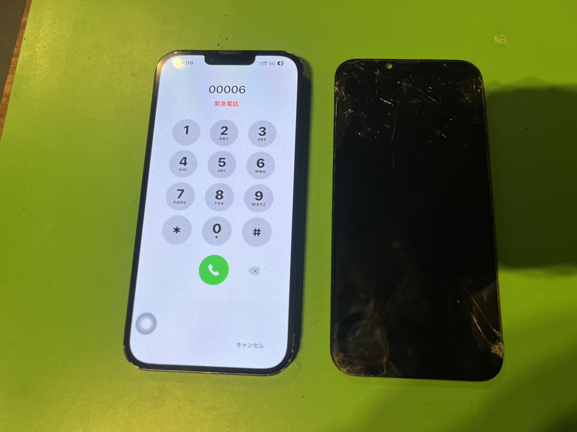 本日は、横浜市栄区本郷台よりiPhone 14 Plusを落として画面が割れ、液晶が映らなくなってしまったとの事で