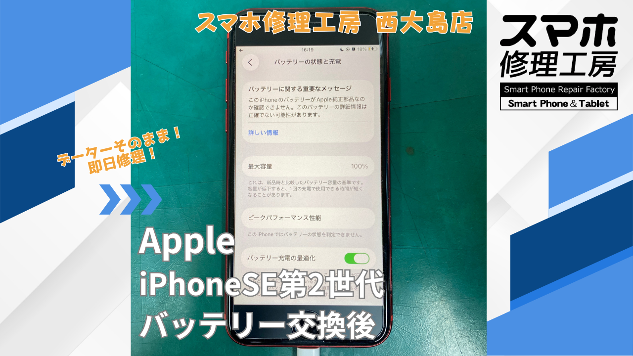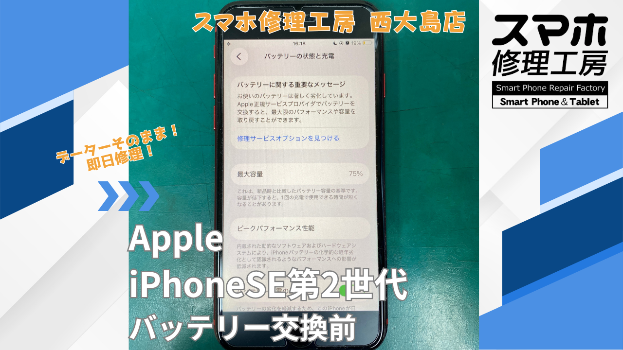 iPhoneSE 第2世代 バッテリー劣化|バッテリー交換|江東区でデータそのまま修理ならスマホ修理工房 西大島店