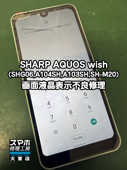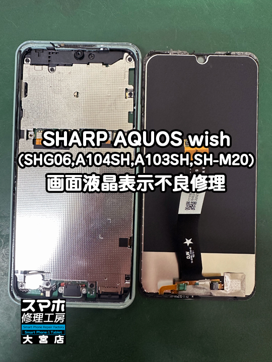 SHARP AQUOS wish(SHG06,A104SH,A103SH,SH-M20)の画面液晶表示不良修理です。