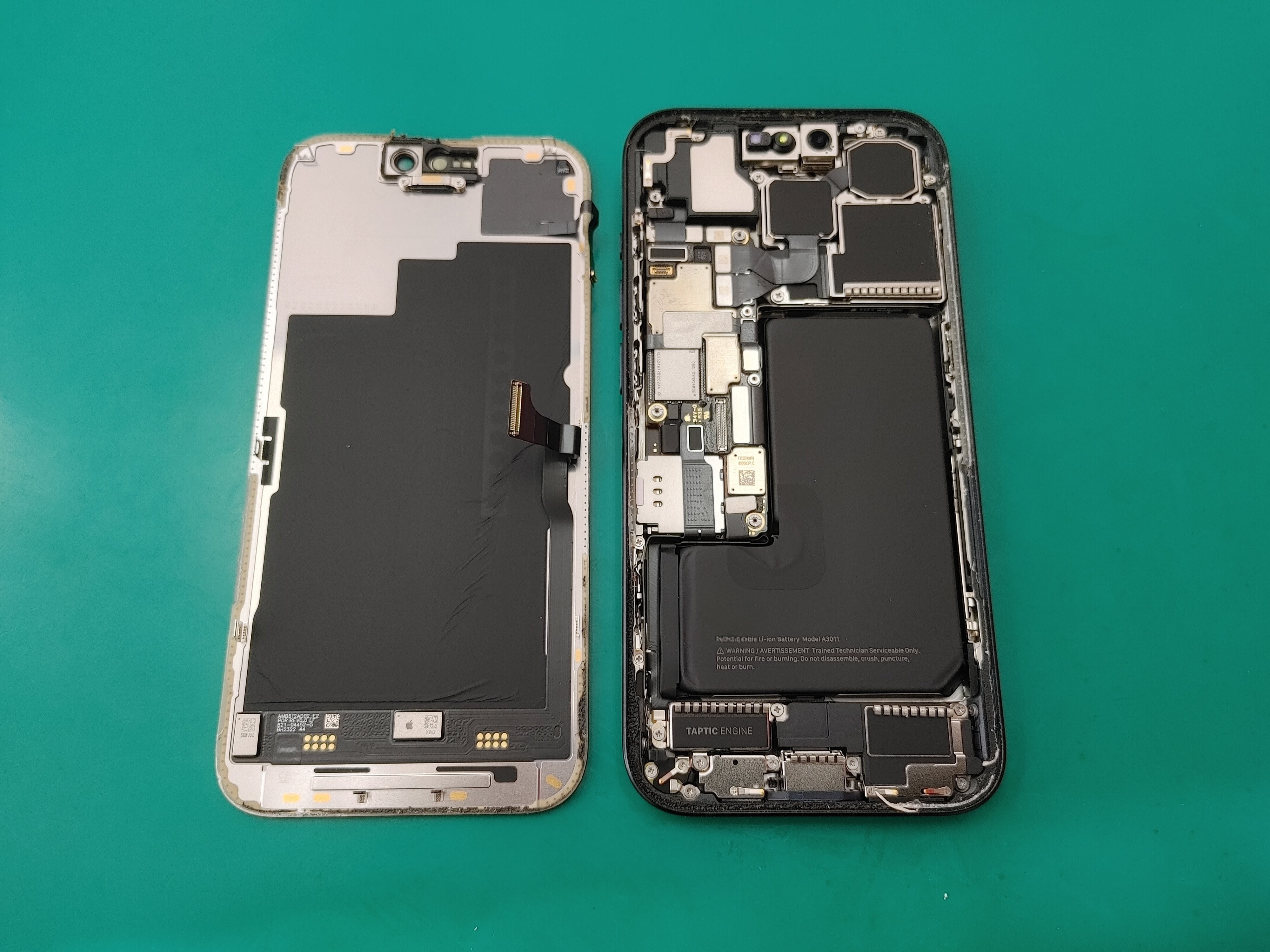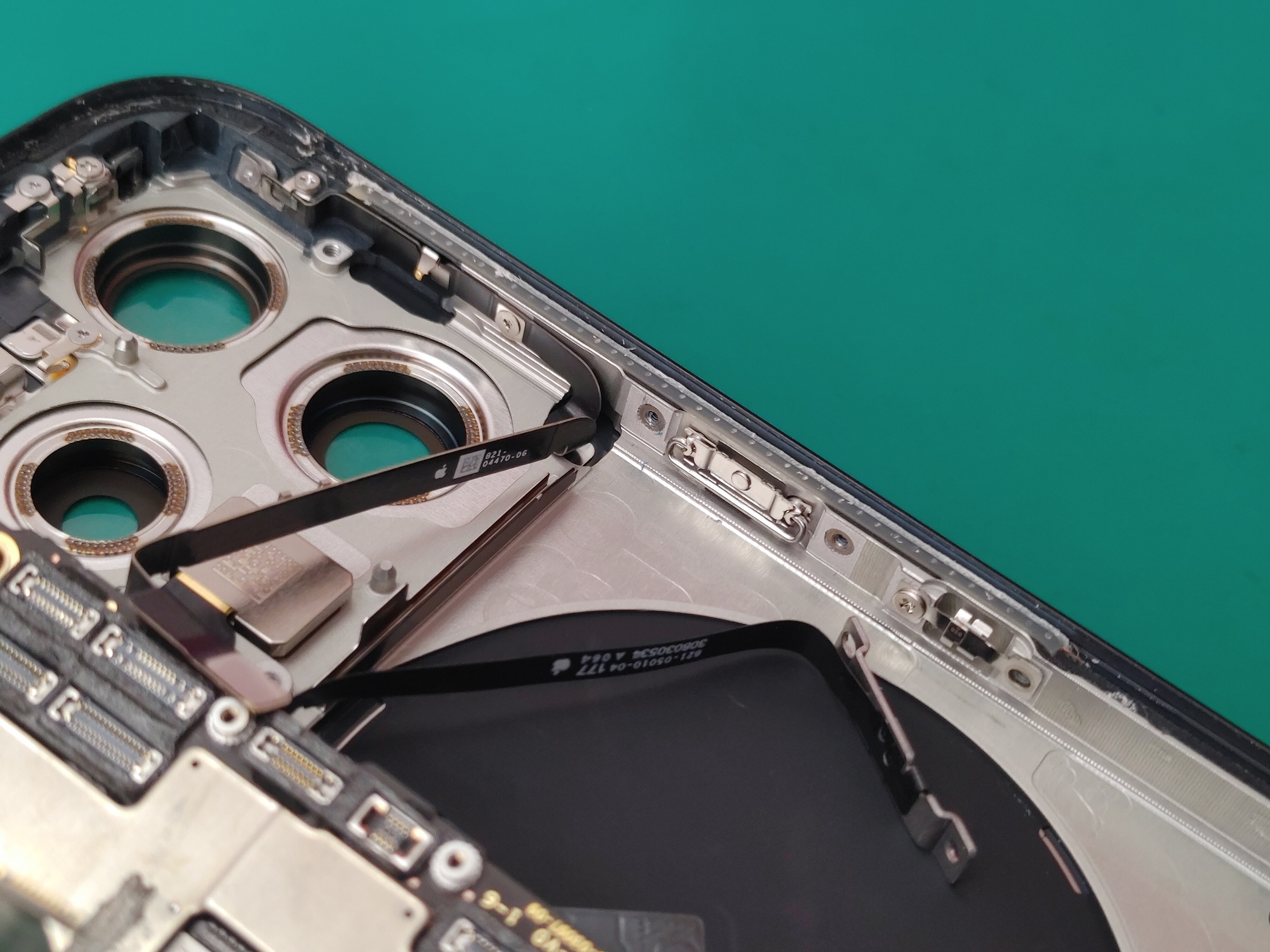 画面パネルを取り外したら、スリープボタンへアクセスするためにバッテリーやカメラも取り出します。