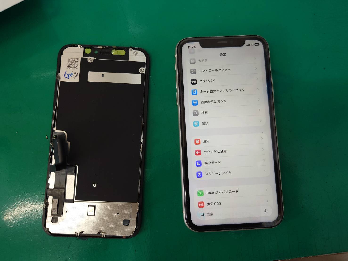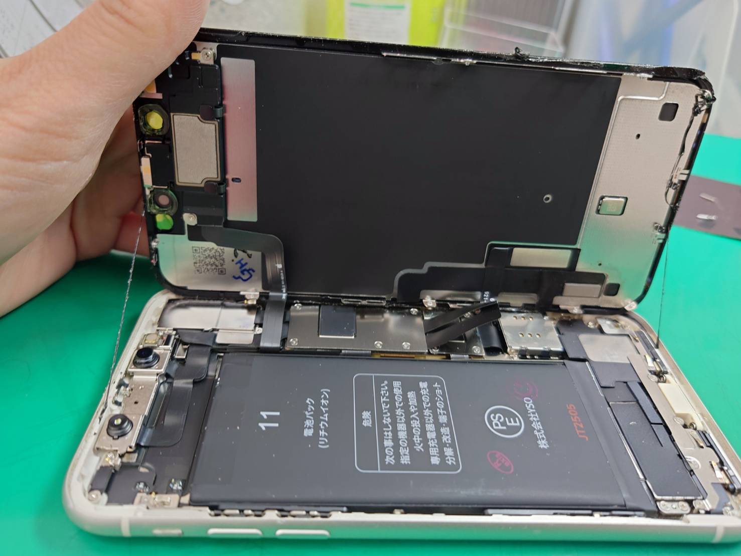 ※iPhone11以降から、Apple純正品かつ本体と部品の情報をAppleデータサーバーに登録を行っていない画面/バッテリーを取り付けると部品交換に関するメッセージが表示されますが、使用には問題ありません。