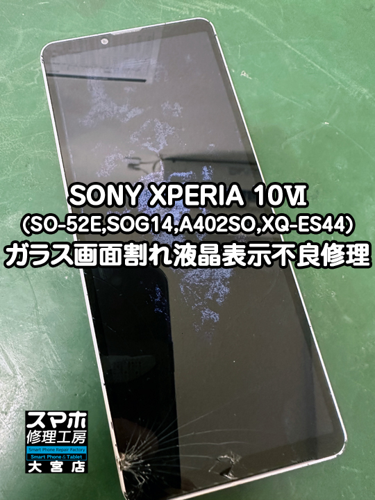 SONY XPERIA 10Ⅵ(SO-52E,SOG14,A402SO,XQ-ES44)のガラス画面割れ液晶表示不良修理です。