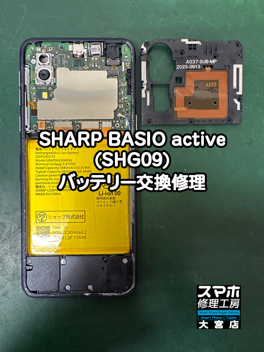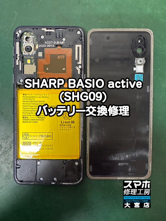 <SHARP BASIO active(SHG09)バッテリー交換修理>