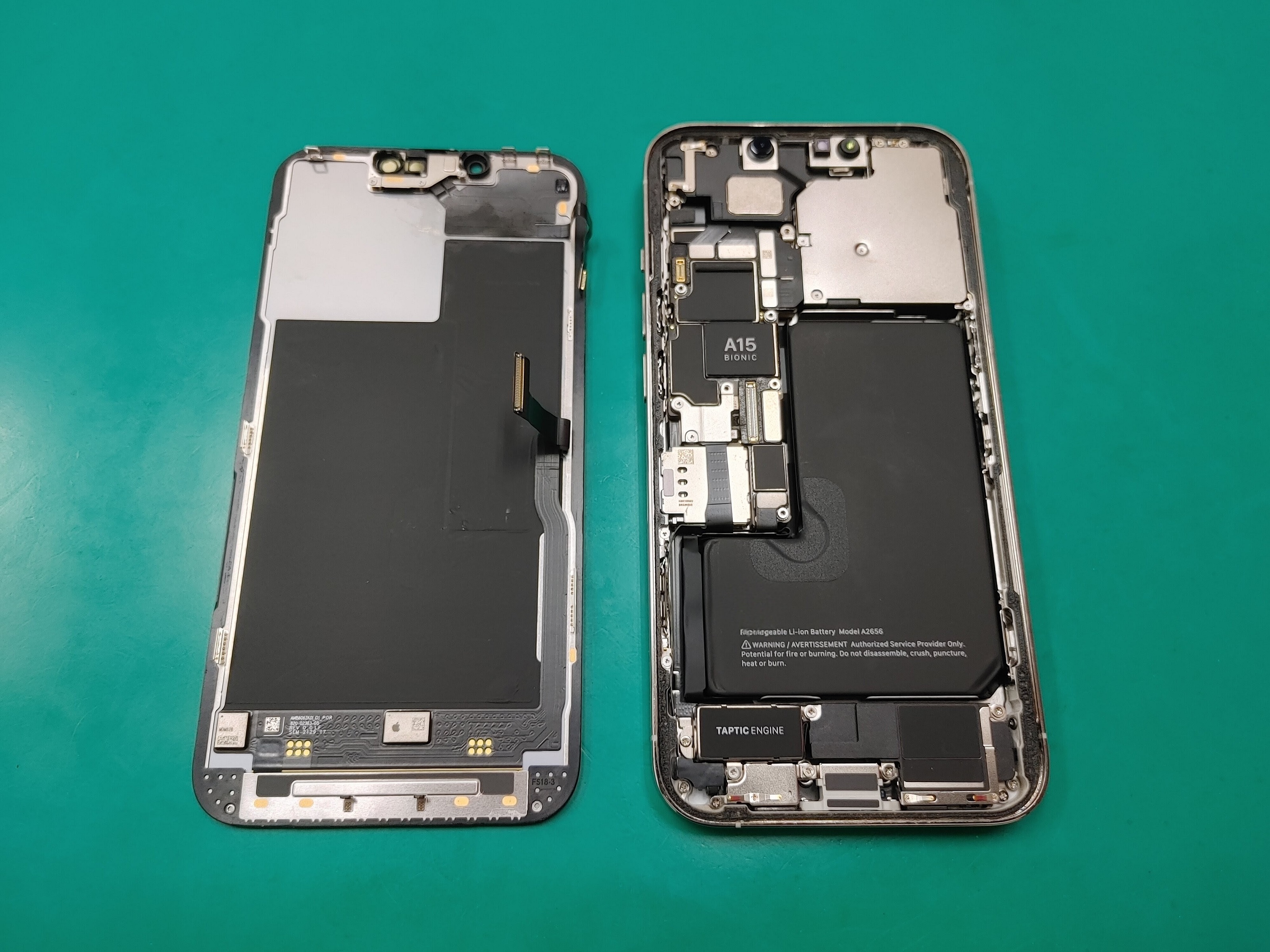 新しい画面パネルを仮付けでの動作確認に問題なければ元通りに組み上げて修理完了です✨