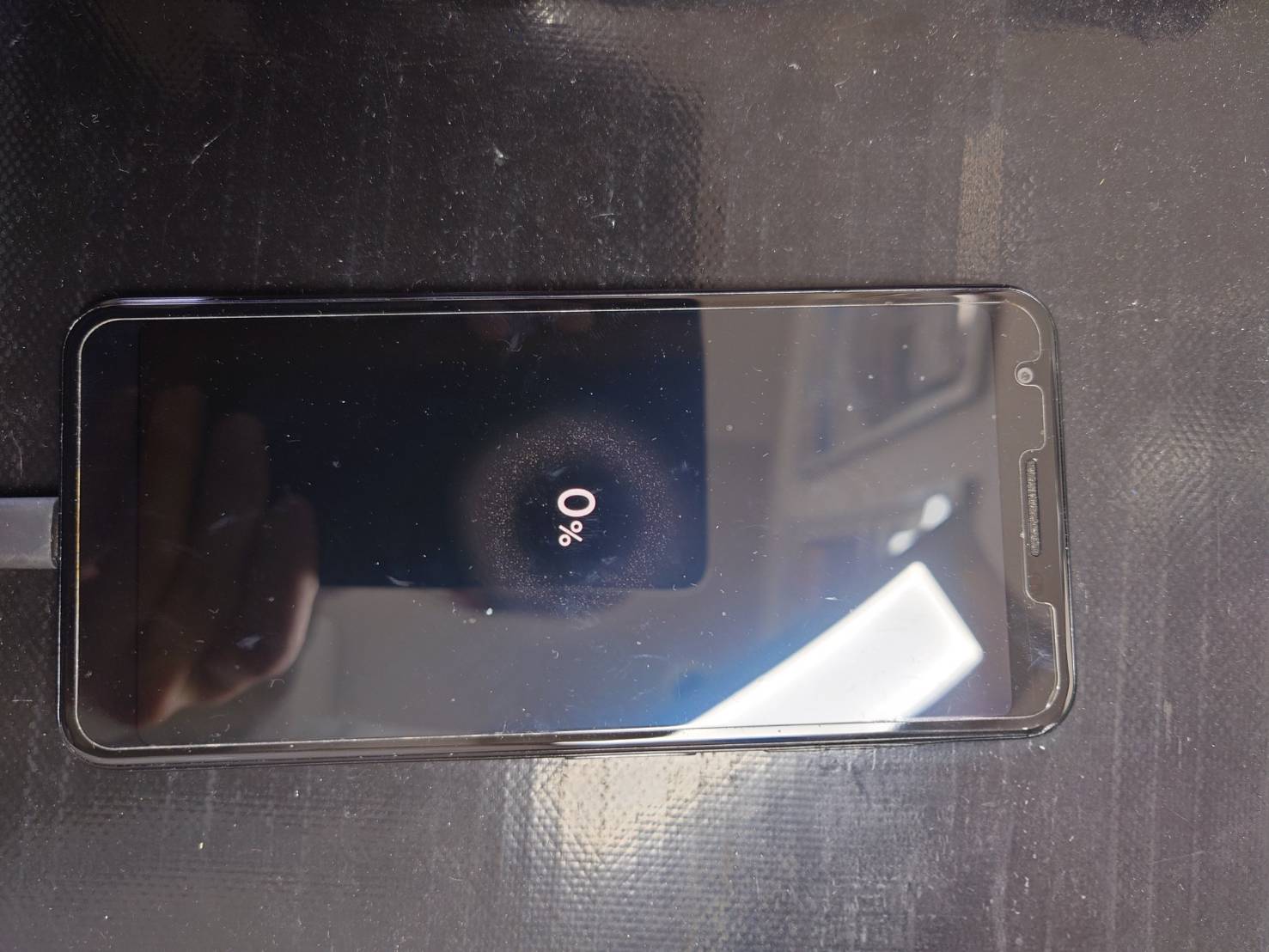 お持ち込みを頂いた時点でバッテリー残量は0%でしたが、充電器に接続するとすぐに20%,30%と表示が変化する状態…基板又はバッテリー不具合が疑われます。