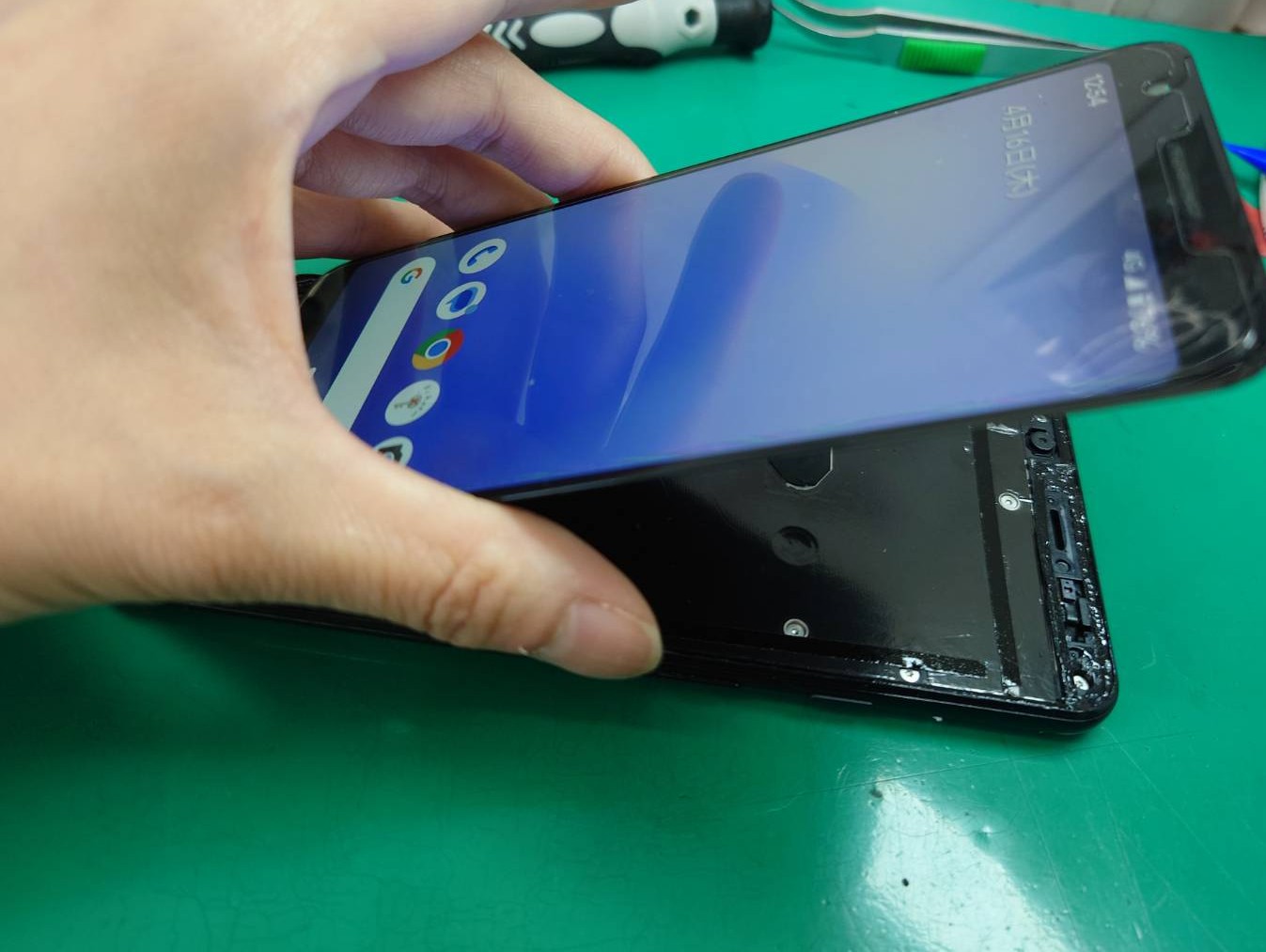 最近のPixelとは異なりフレームがネジ固定されている為、画面→フレームの順番で分解を行っていきます。