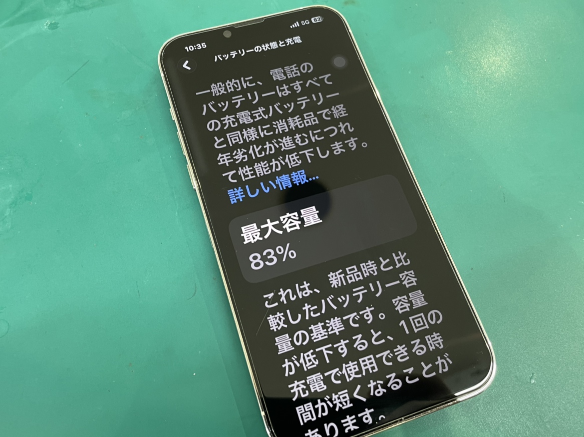 「83%」まで低下しており、電池寿命が来ている状態でした。