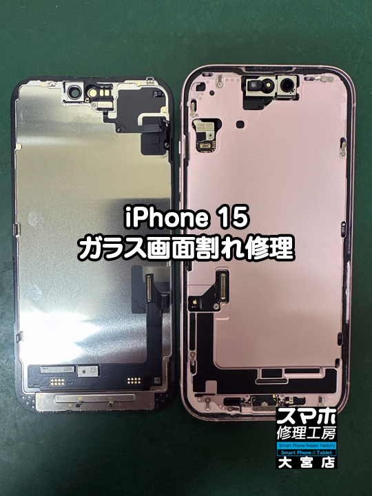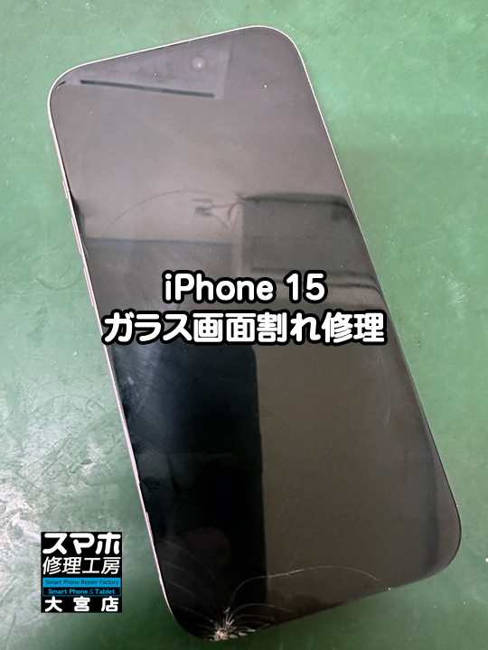 <iPhone 15ガラス画面割れ修理>