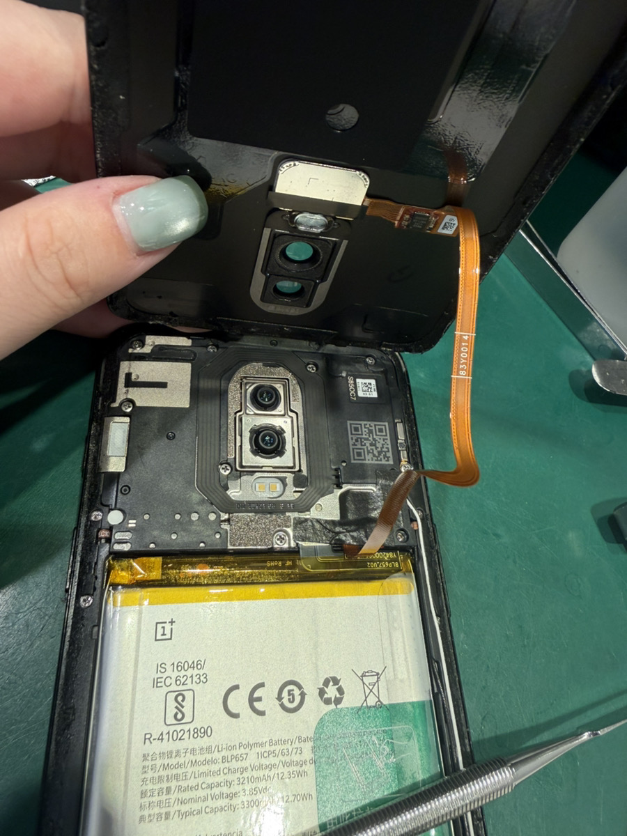 背面を開けると指紋ケーブルがブラケットの下に繋がってあるので、