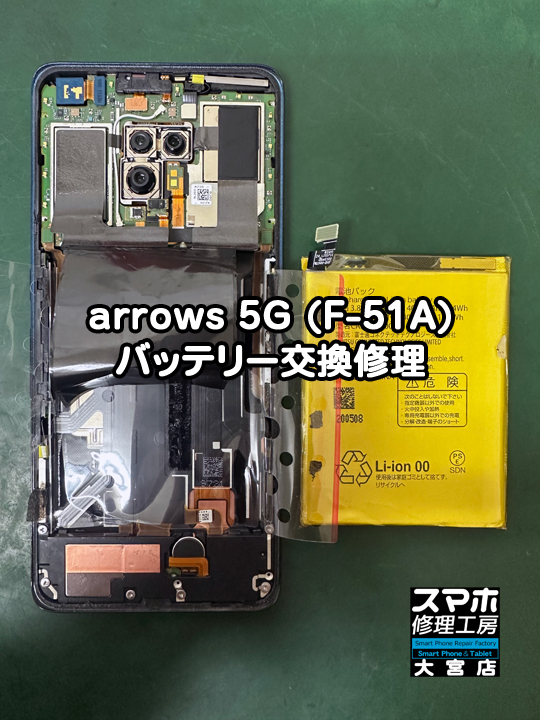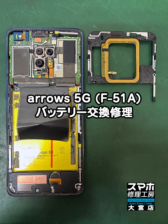 arrows 5G(F-51A)バッテリー交換修理です。