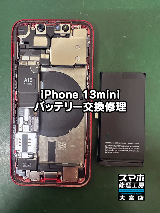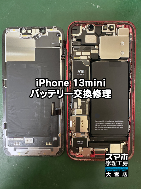 <iPhone 13miniバッテリー膨張交換修理>