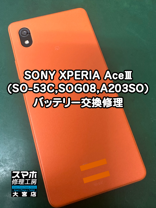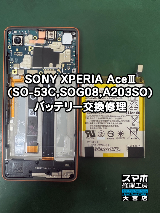 SONY XPERIA AceⅢ(SO-53C,SOG08,A203SO)バッテリー交換修理です。