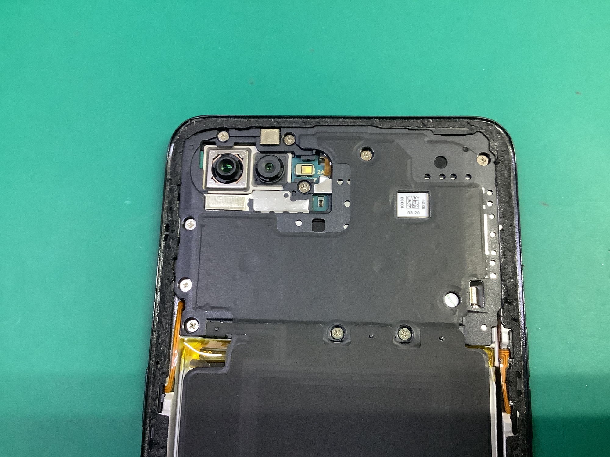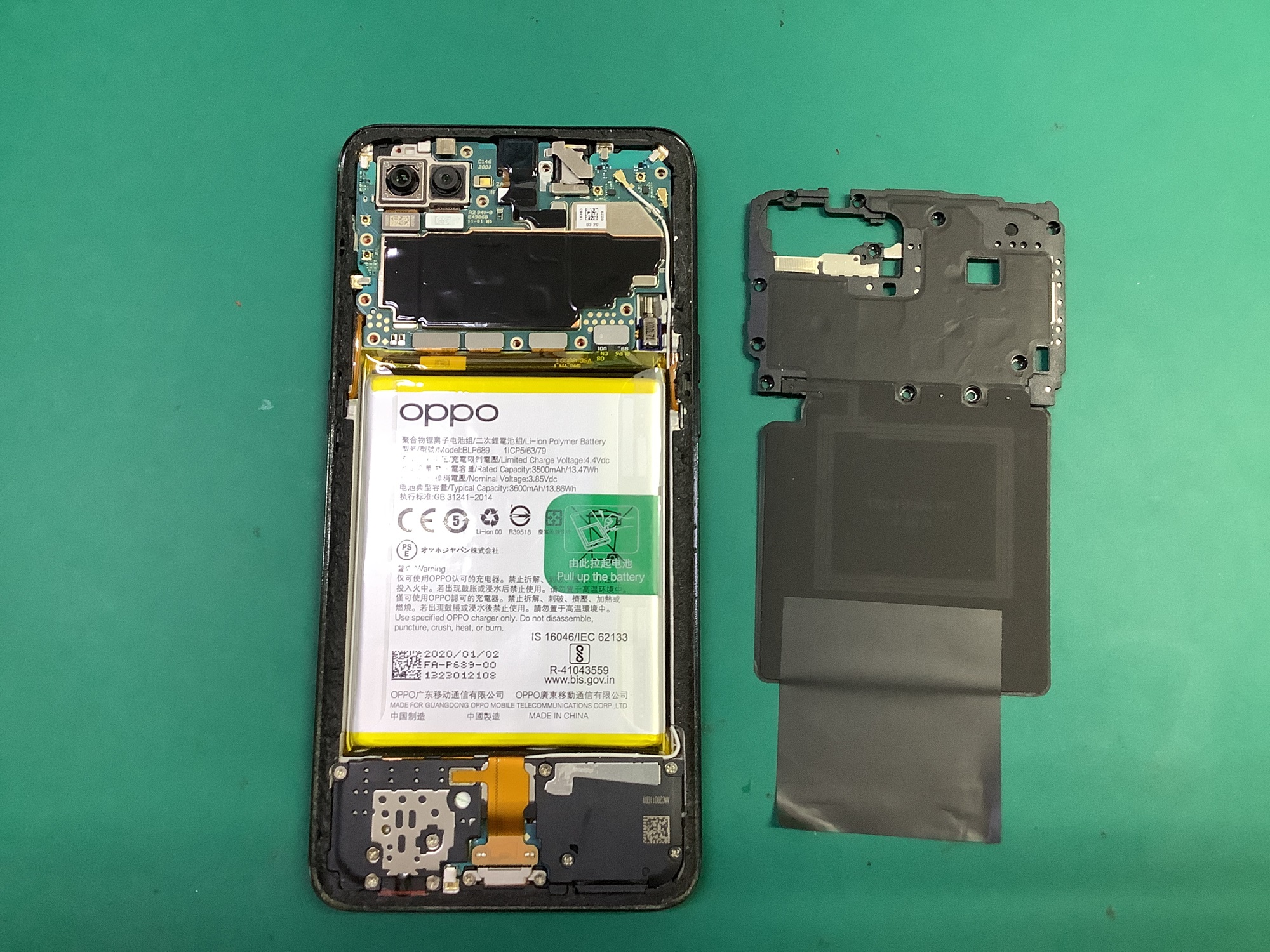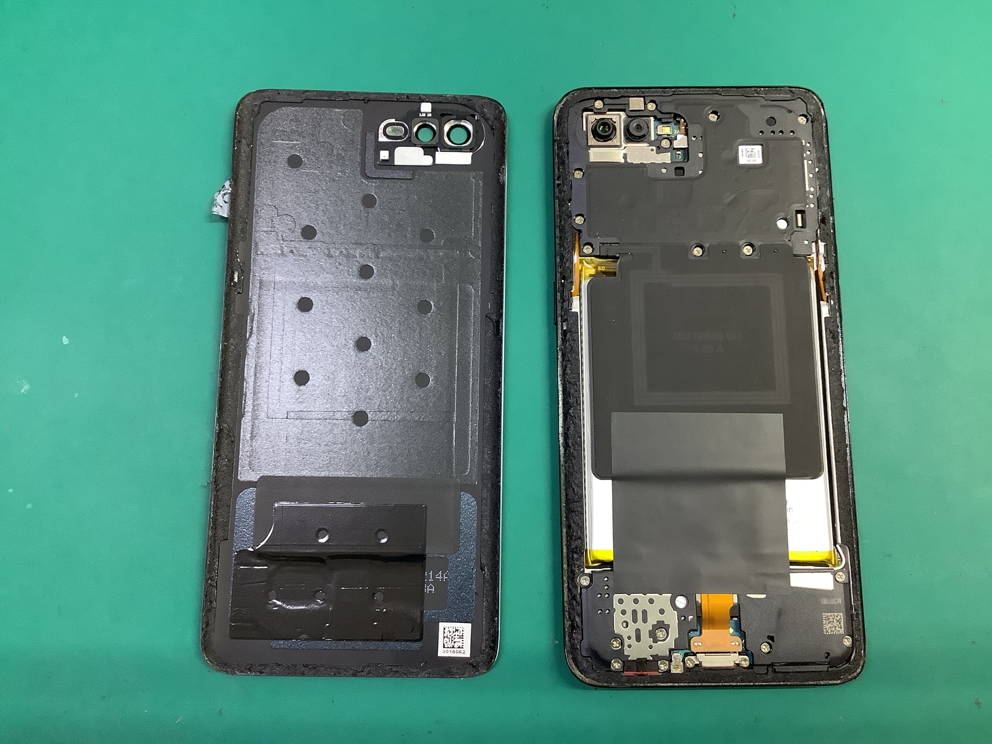 「OPPO Reno A」は背面のバックパネルから分解を行っていきます。