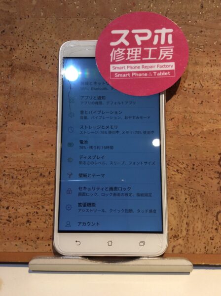 ASUS ZenFone3(エイスース ゼンフォン3)画面割れの事なら地域最安値で修理可能なスマホ修理工房 広島パルコ新館店にお任せください!!