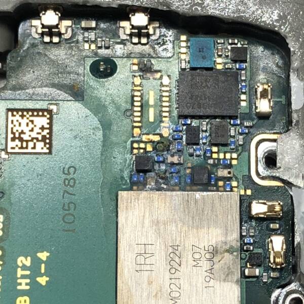 基板の腐食がかなり進んでいる状態でした・・・端子部分はショートしたような跡も見られます。