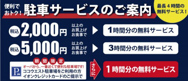 高崎OPAの駐車サービスにつきましては、20ヶ所の提携駐車場がございます。