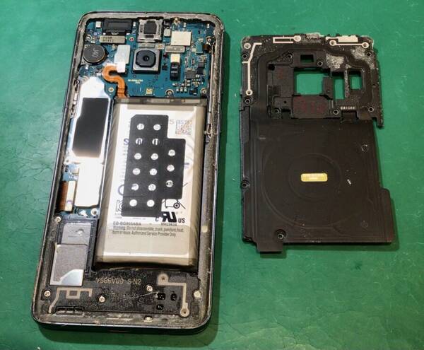 次にNFCアンテナ/ワイヤレス充電コイル付きブラケットを外します。